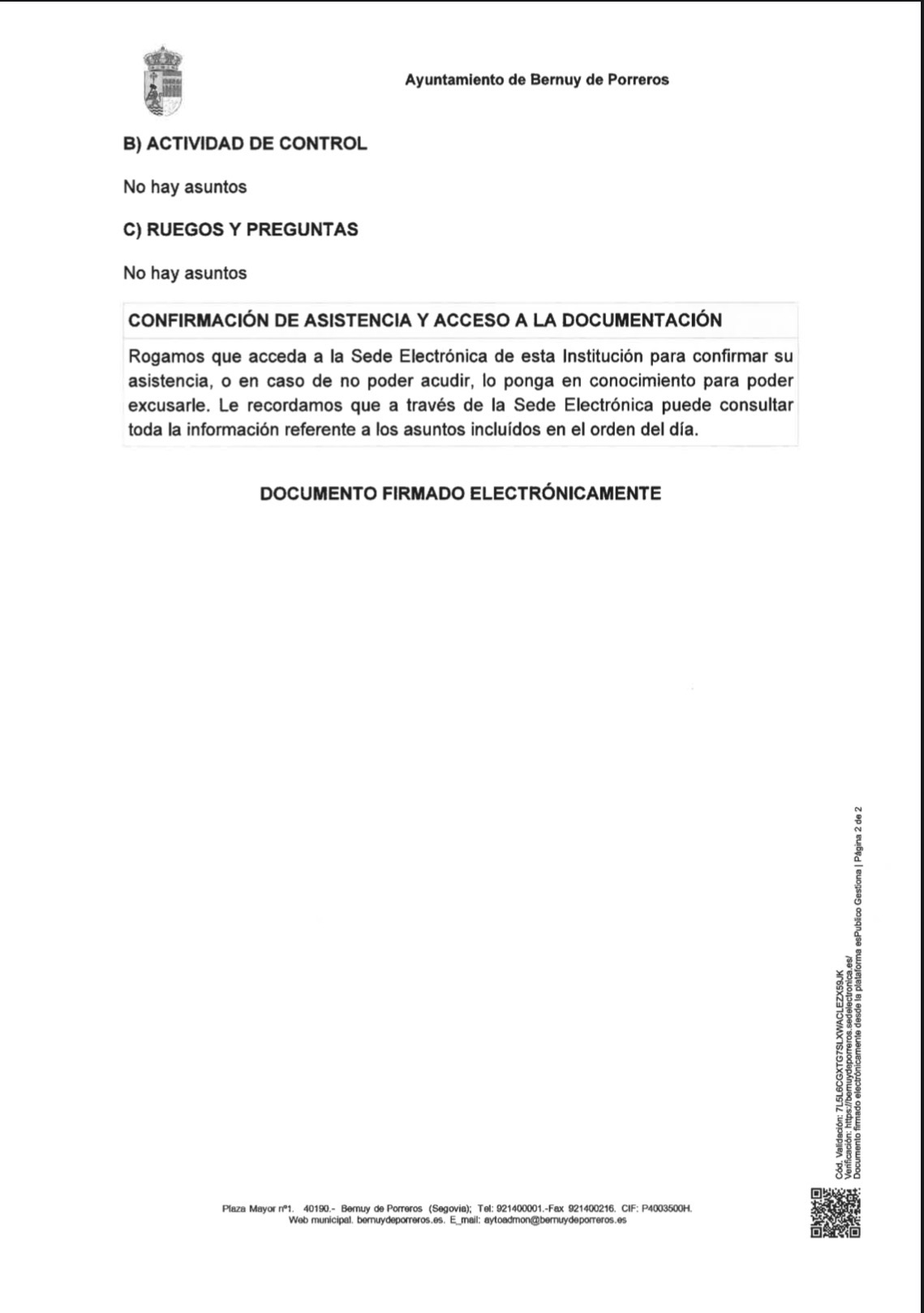Se podrán solicitar un máximo de 2 entradas por persona, la solicitud deberá enviarse al correo alcaldia@bernuydeporreros.es indicando:
