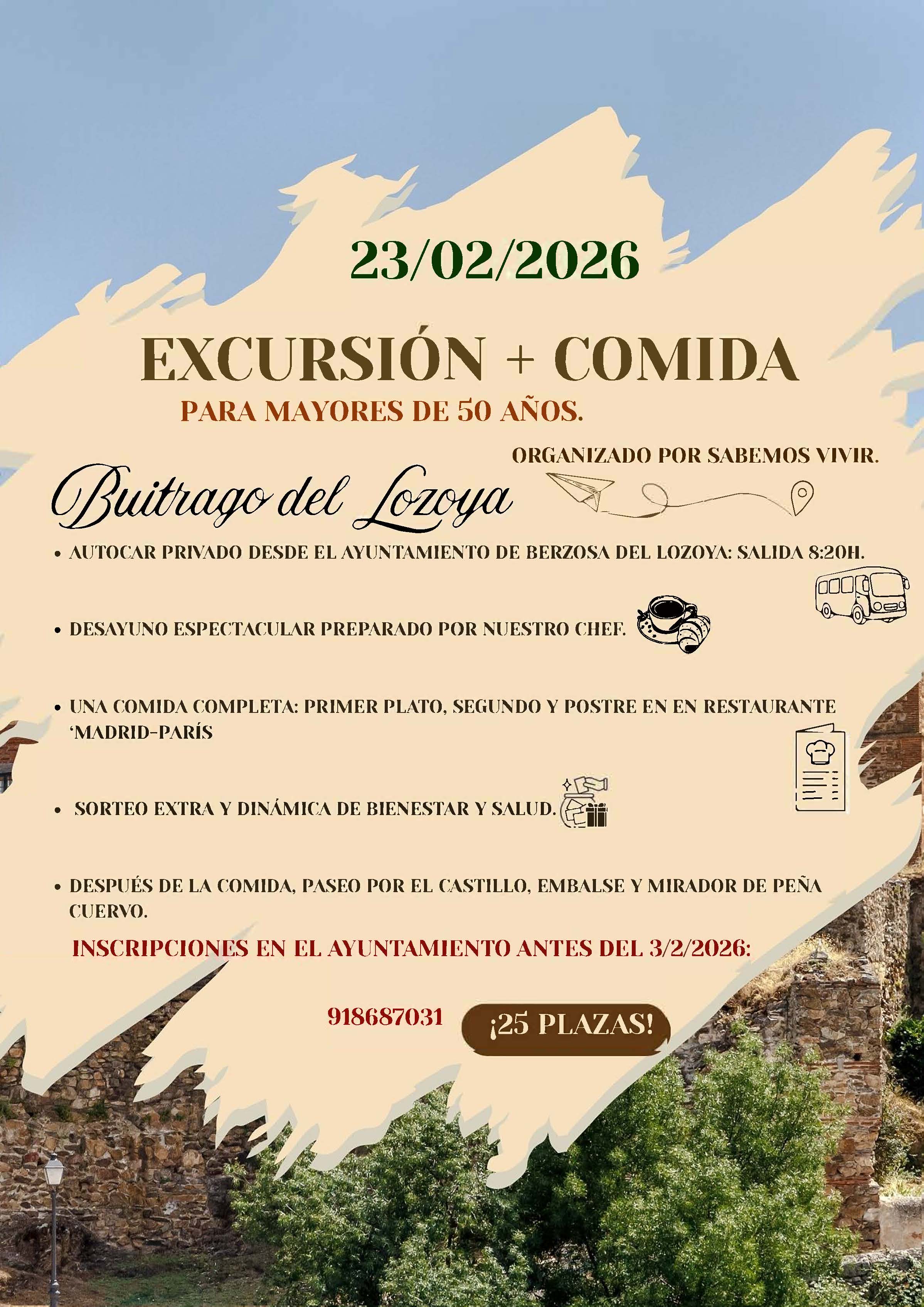 🚌 Salida en autocar privado desde el Ayuntamiento de Berzosa del Lozoya a las 8:20 h.