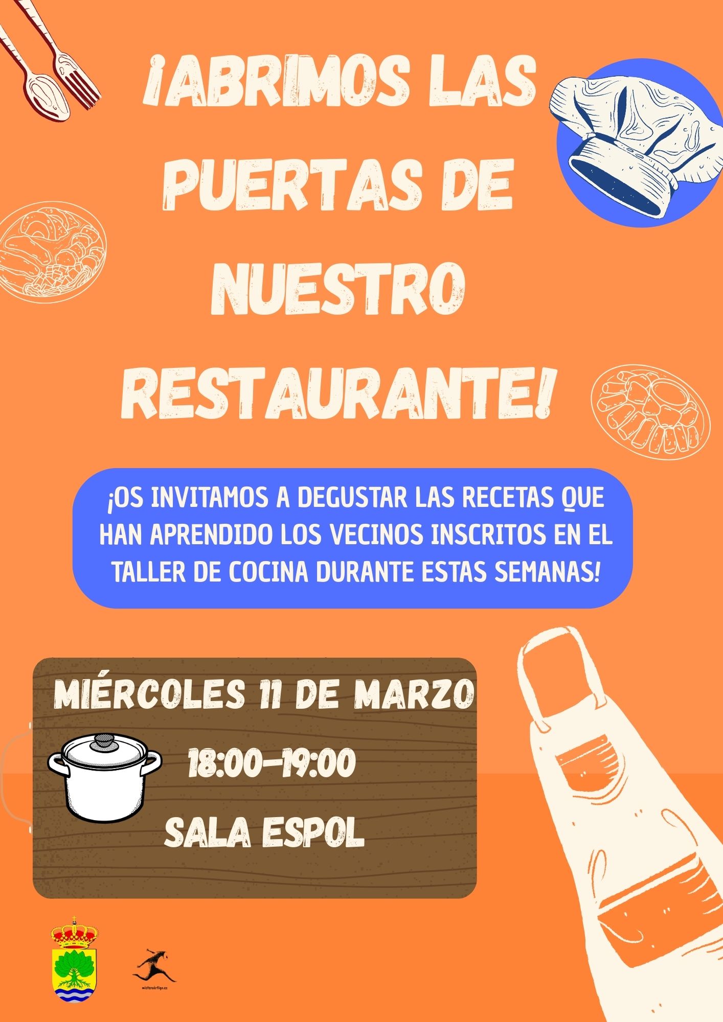 Se informa a todos los vecinos y vecinas que el próximo jueves, 2 de abril, en horario de 11:00 a 14:00 horas, se celebrará un Taller de Cocina impartido por María Duperyron, quien ya fue la encargada del exitoso Taller de Roscón de Reyes celebrado en nuestro municipio.