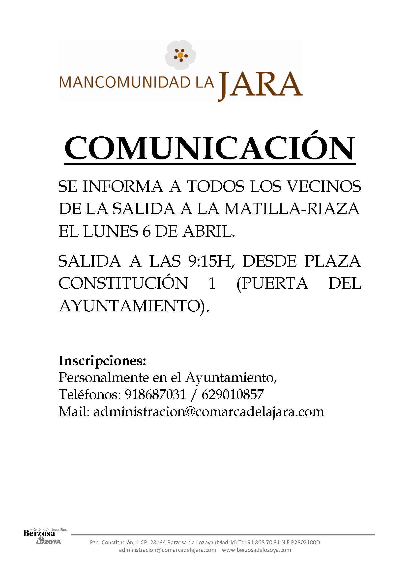SE INFORMA DE LA SALIDA A LA MATILLA-RIAZA EL PRÓXIMO LUNES 6 DE ABRIL.