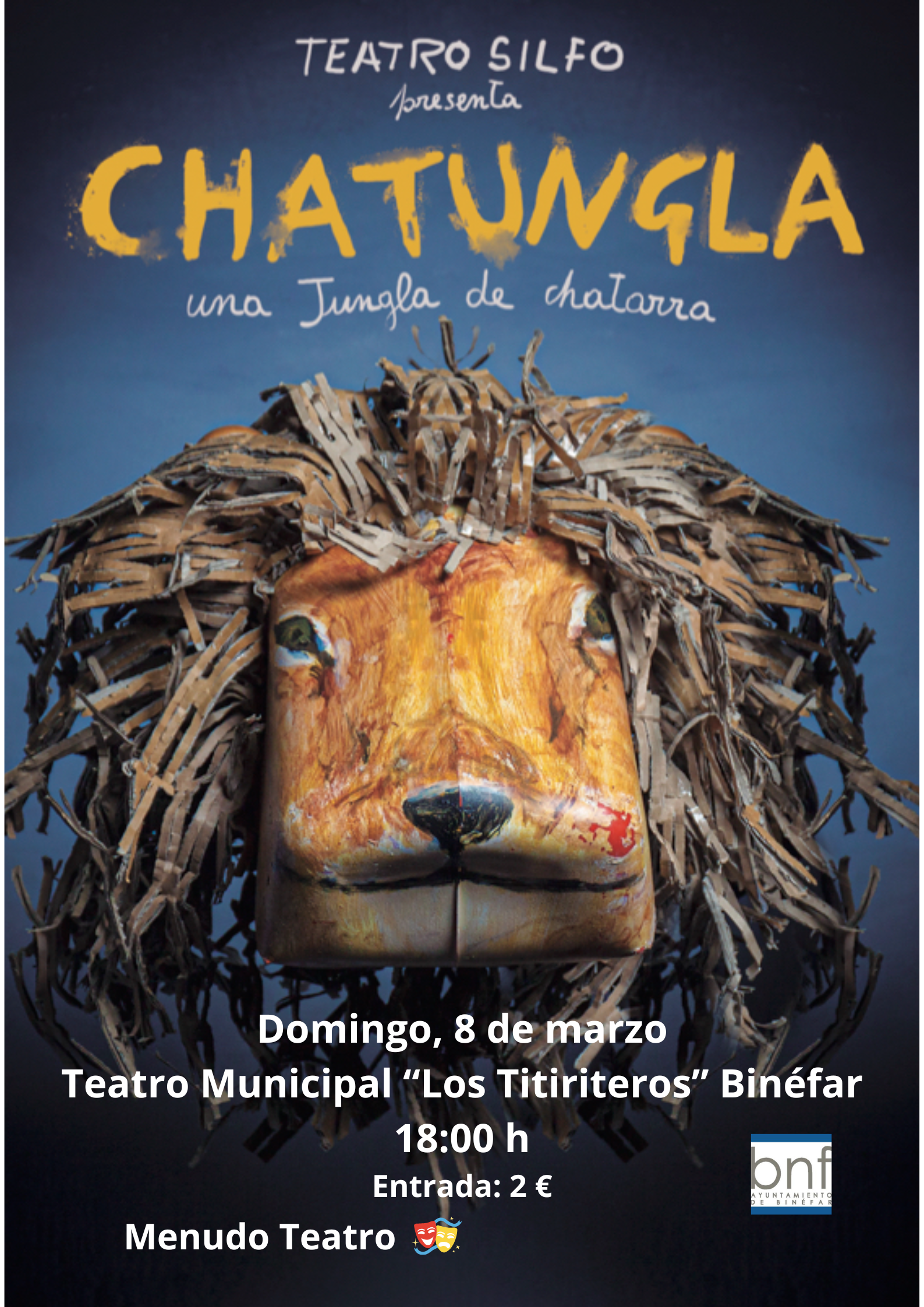 Menudo Teatro regresa este domingo al Teatro Municipal 'Los Titiriteros de Binéfar' con 'Chatungla, una Jungla de chatarra' de Teatro Silfo a las 18.00 h.