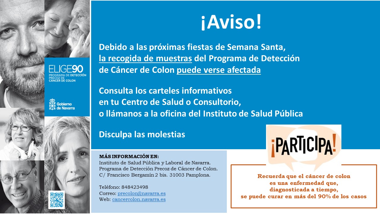 Debido a las próximas fiestas de San Fermín, en Pamplona, la recogida de muestras del Programa de Detección Precoz de Cáncer de Colon puede verse afectada.