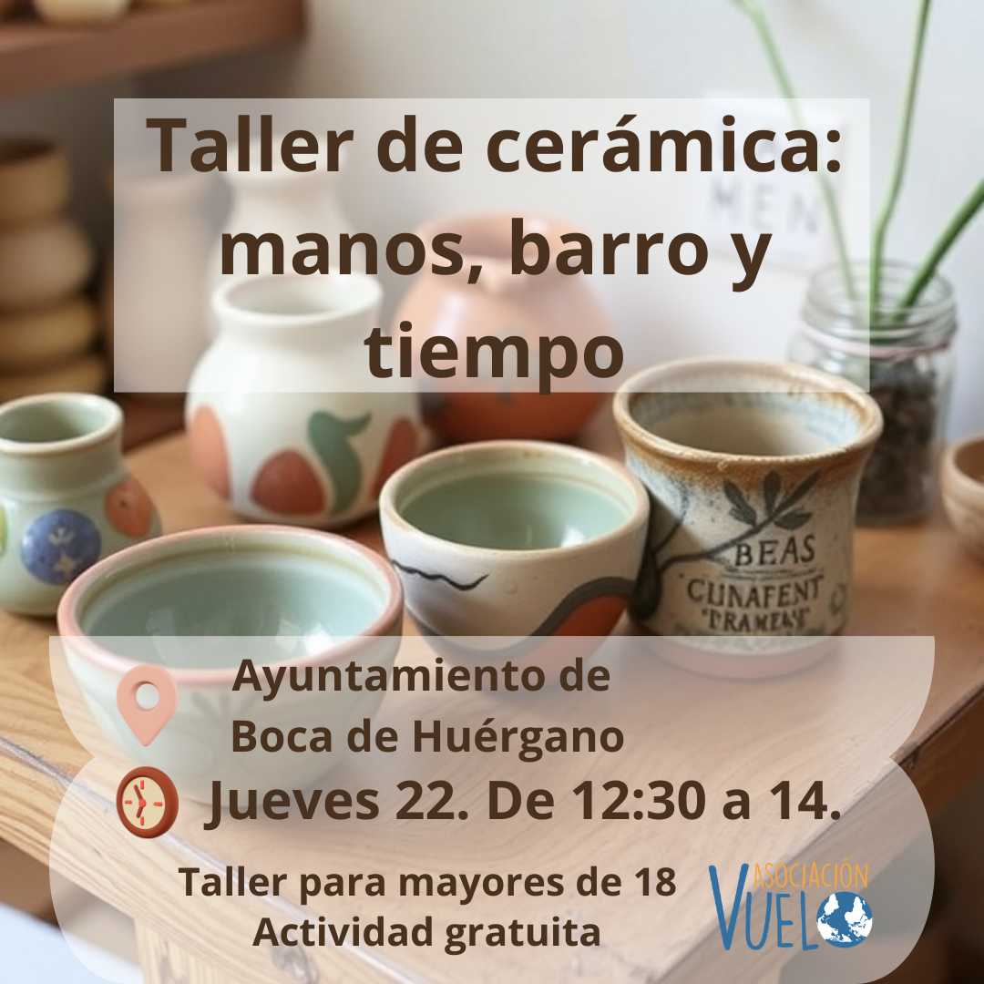 Taller práctico de cerámica pensado para personas adultas que quieran disfrutar del trabajo manual, del contacto con el barro y del ritmo
