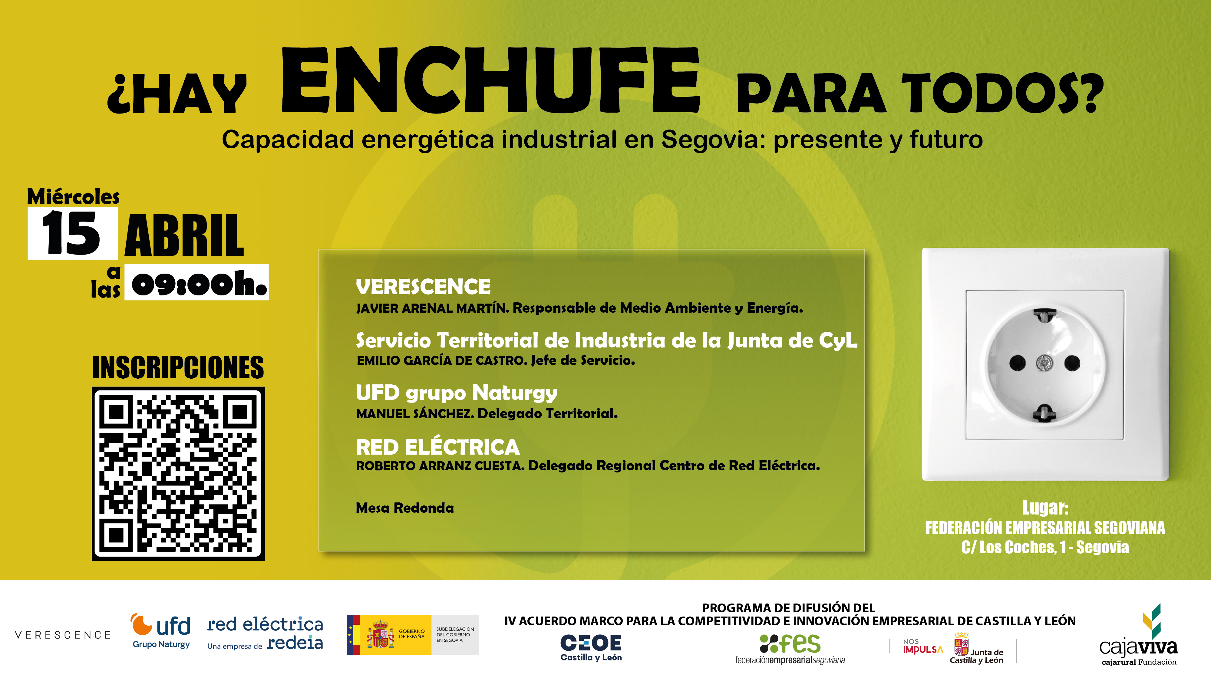 Desde la Federación Empresarial Segoviana invitan a participar en la jornada "¿Hay enchufe para todos? Capacidad energética industrial en Segovia: presente y futuro", que se celebrará el próximo 15 de abril a las 09:00 h en las instalaciones de las FES.