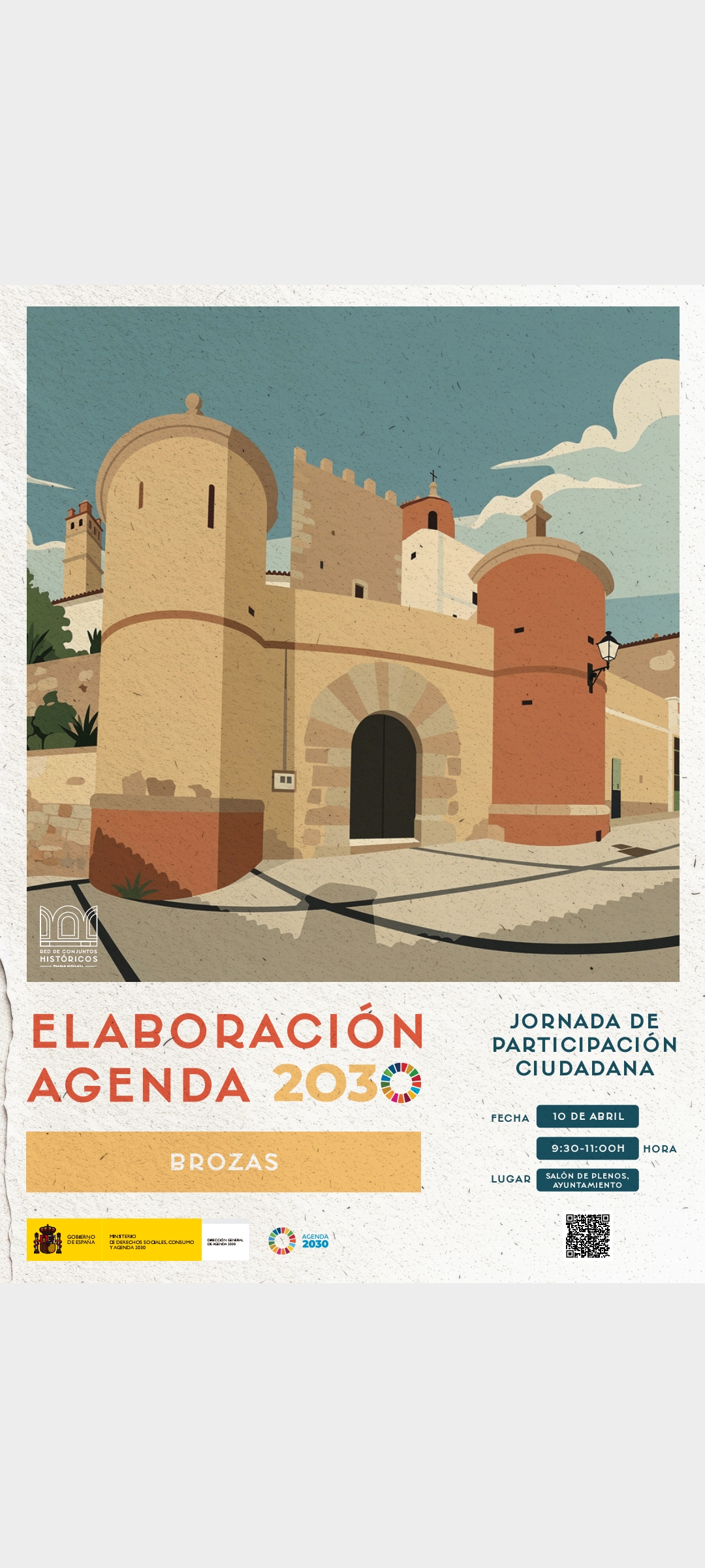 Se informa a todos los vecinos y vecinas que el Ayuntamiento de Brozas organiza una Jornada de Participación Ciudadana para la elaboración de la Agenda 2030.