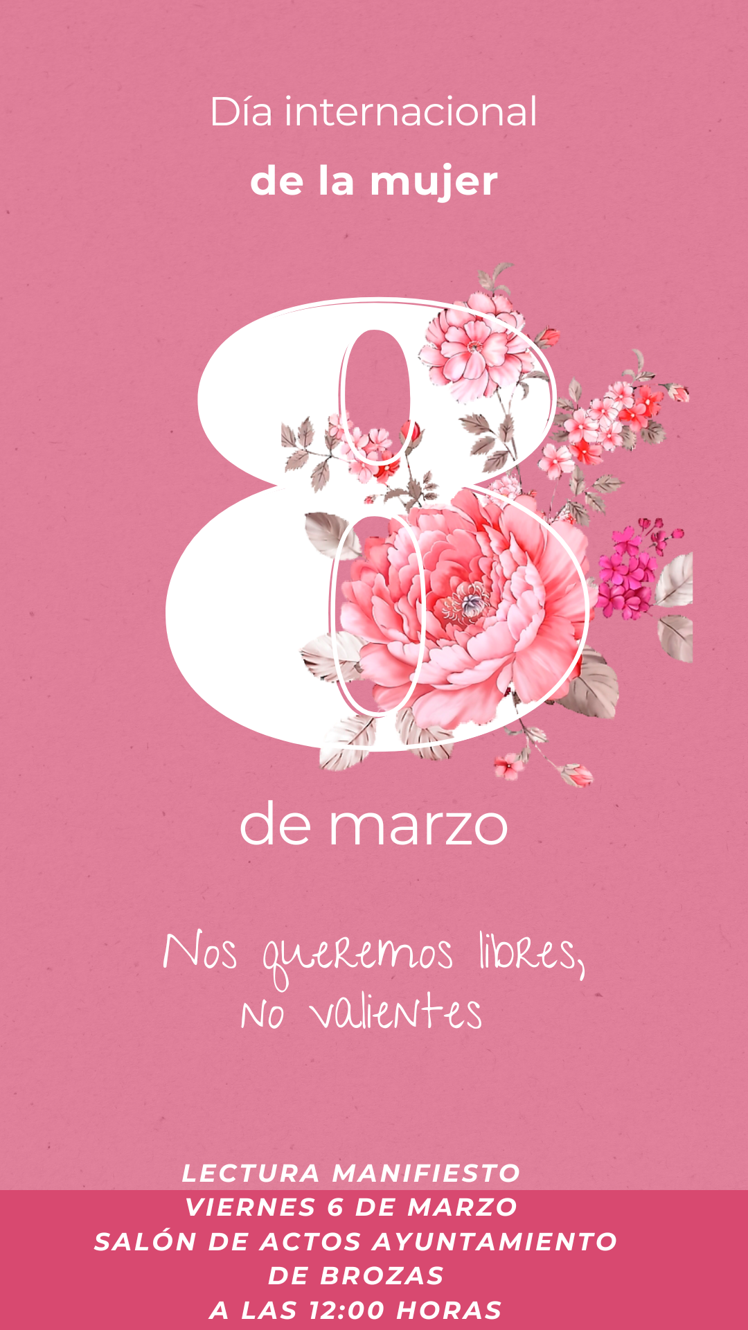 Mañana, viernes 6 de marzo, a las 12:00 h, tendrá lugar en el salón de actos del Ayuntamiento la lectura del manifiesto con motivo de la conmemoración del Día Internacional de la Mujer.