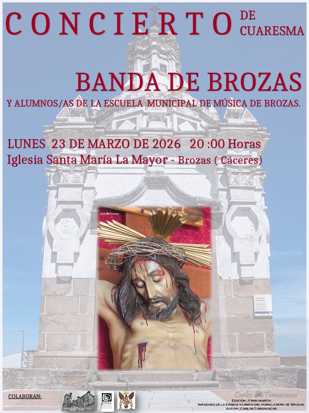 Con motivo del tiempo de Cuaresma, la Banda de Brozas, formada por los alumnos y alumnas de la Escuela Municipal de Música de Brozas, ofrecerá un Concierto de Cuaresma.
