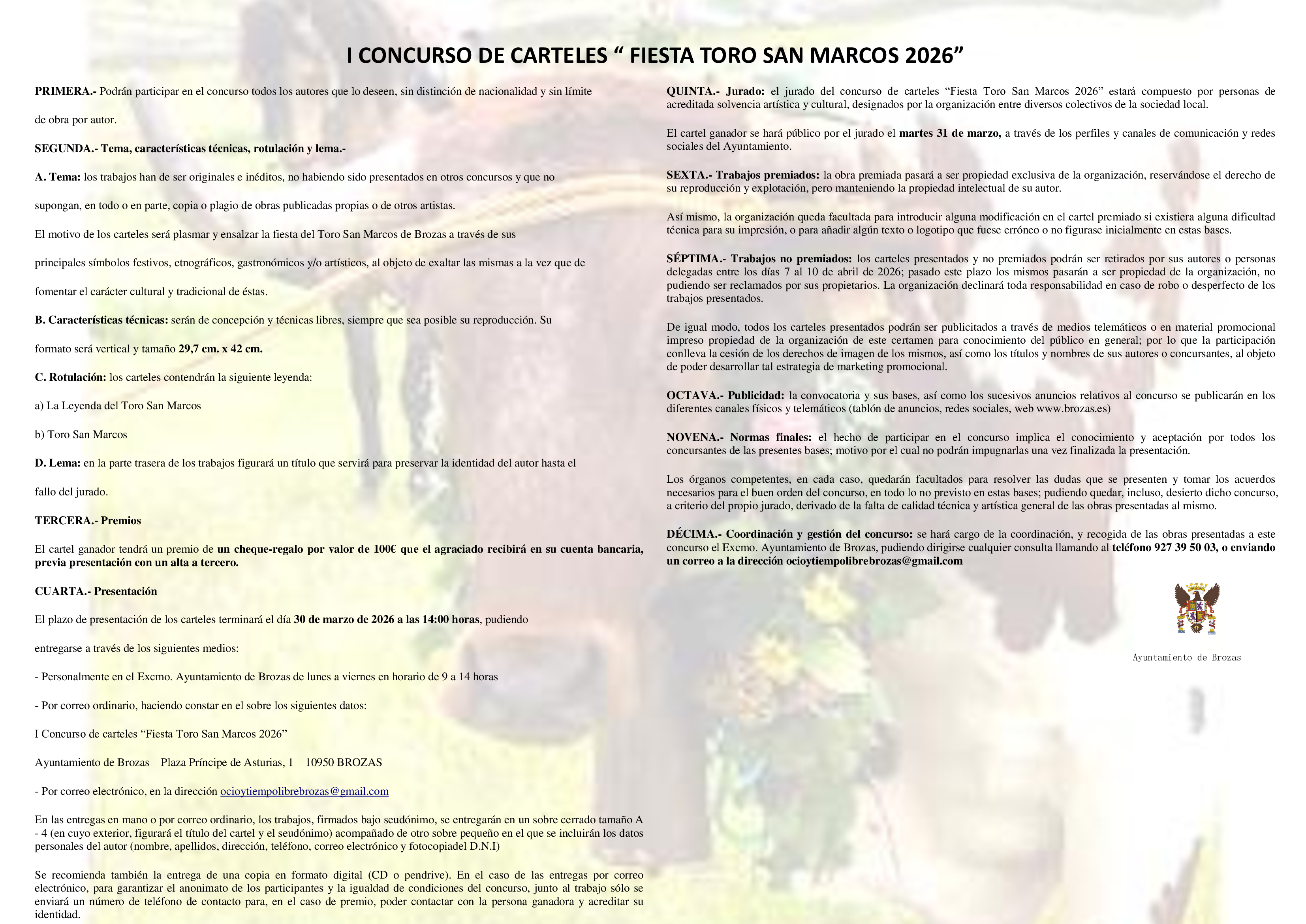 Nos complace comunicar que se va a celebrar el I Concurso de Cartel Anunciador para las fiestas de Toro San Marcos 2026.