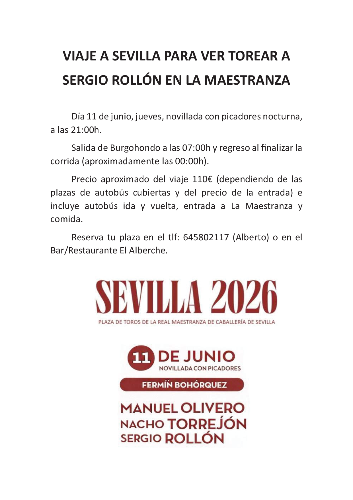 Precio aproximado del viaje 110€ (dependiendo de las plazas de autobús cubiertas y del precio de la entrada) e incluye autobús ida y vuelta, entrada a La Maestranza y comida.