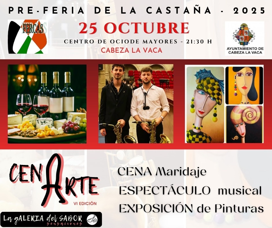 La Pre-Feria de la Castaña 2025 acoge una nueva edición de CENARTE – La Galería del Sabor, una experiencia gastronómica y cultural que une el placer de la buena mesa con la expresión artística y musical.