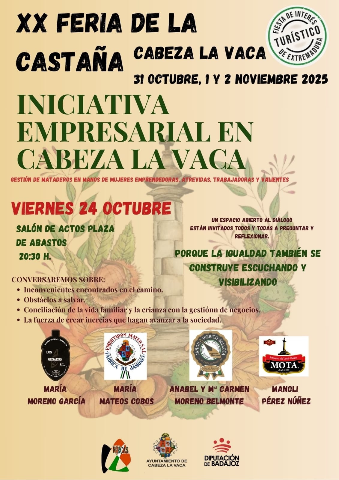 En el marco de la preferia de la castaña, abrimos un espacio de encuentro y diálogo bajo el título “Iniciativa empresarial en Cabeza la Vaca”, dedicado a visibilizar el papel de mujeres emprendedoras, trabajadoras y valientes que gestionan negocios locales con esfuerzo y compromiso.