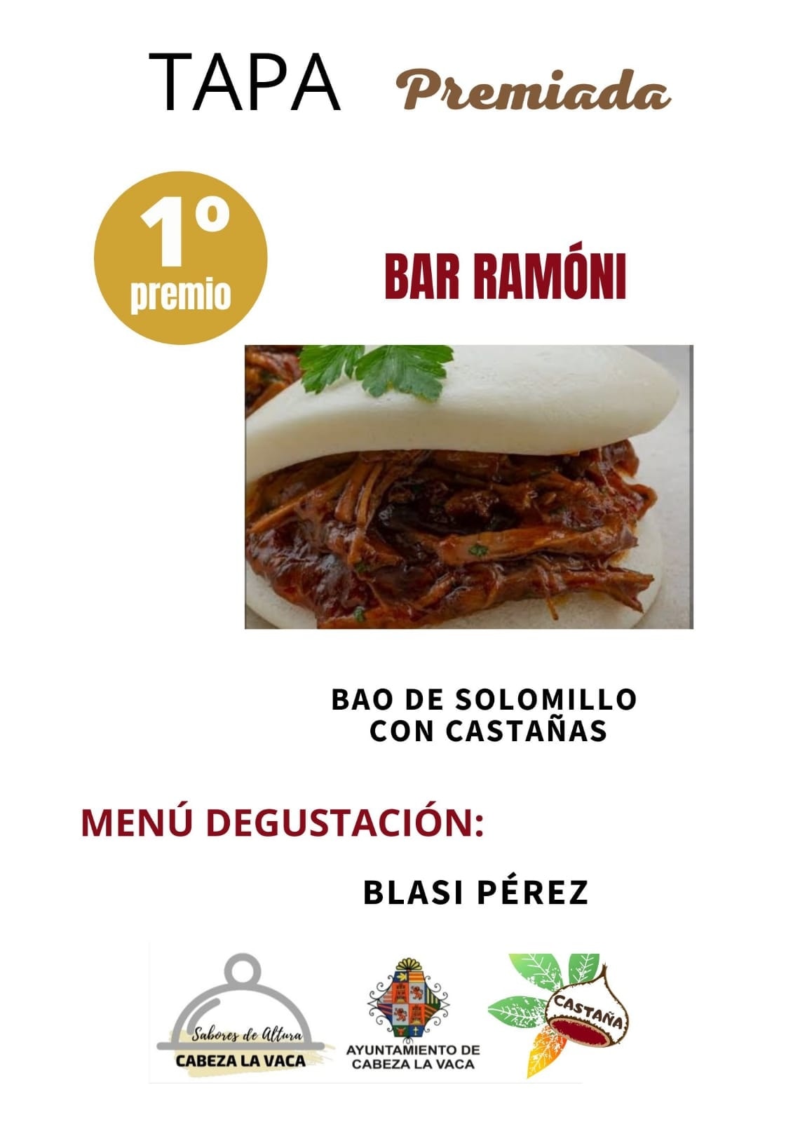 La tapa ganadora ha sido el Bao de solomillo con castañas, elaborada por BAR RAMÓNI, que se alza con el 1º premio mediante el voto popular.