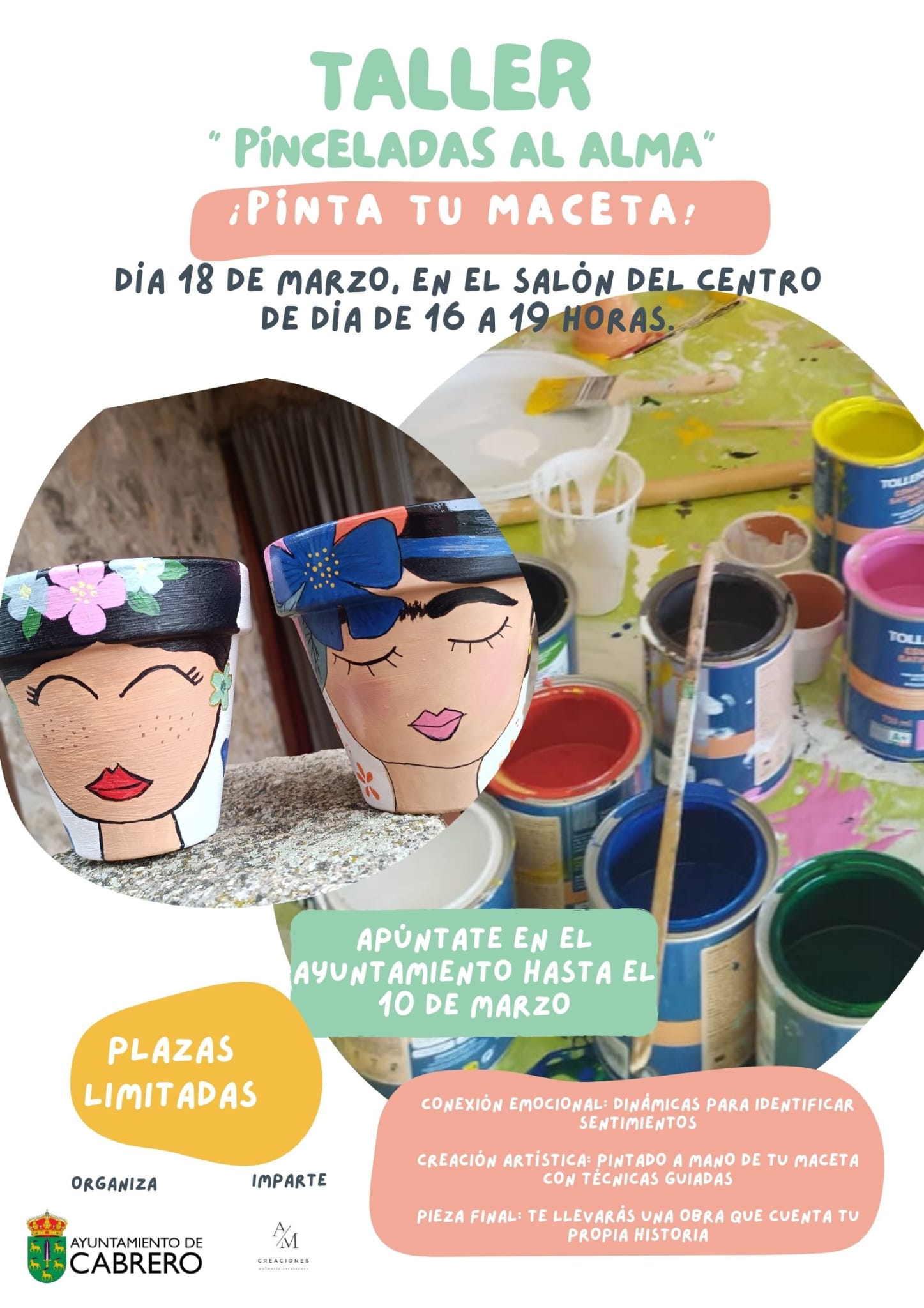 Con motivo del 8 de marzo, día internacional de la mujer, el ayuntamiento propone un taller de pintura de macetas reivindicando el papel de la mujer, así como, visibilizar su papel en la sociedad. El taller lo impartirá Almarte creaciones y será el día 18 de marzo en el centro social a las 16:00 horas. Dicho taller tendrá una duración de 3 horas y las personas interesadas se pueden apuntar por WhatsApp o llamando al 685060065 hasta el día 10 de marzo.