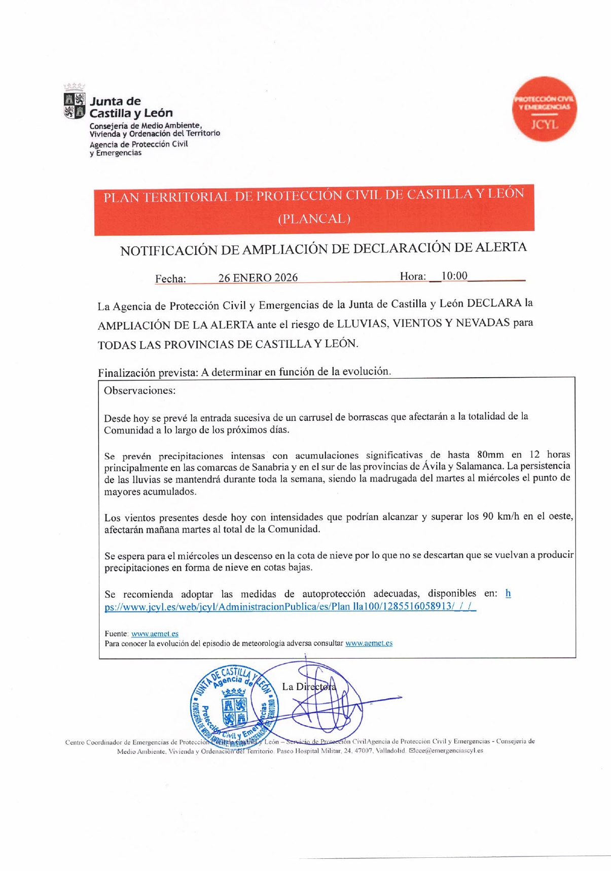 AMPLIACIÓN DE ALERTA POR LLUVIAS, VIENTO Y NEVADAS