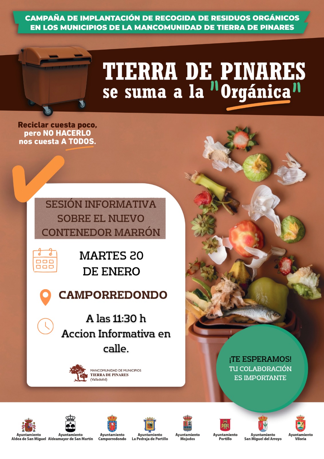 📢 El Ayuntamiento informa de la puesta en marcha de sesiones informativas sobre el nuevo contenedor marrón y la campaña de implantación de la recogida de residuos orgánicos.