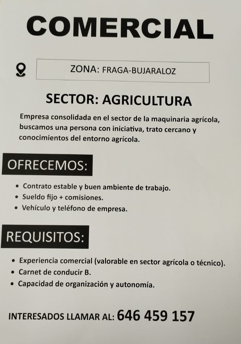 Se busca comercial para el sector de maquinaria agrícola en la zona de Fraga – Bujaraloz.