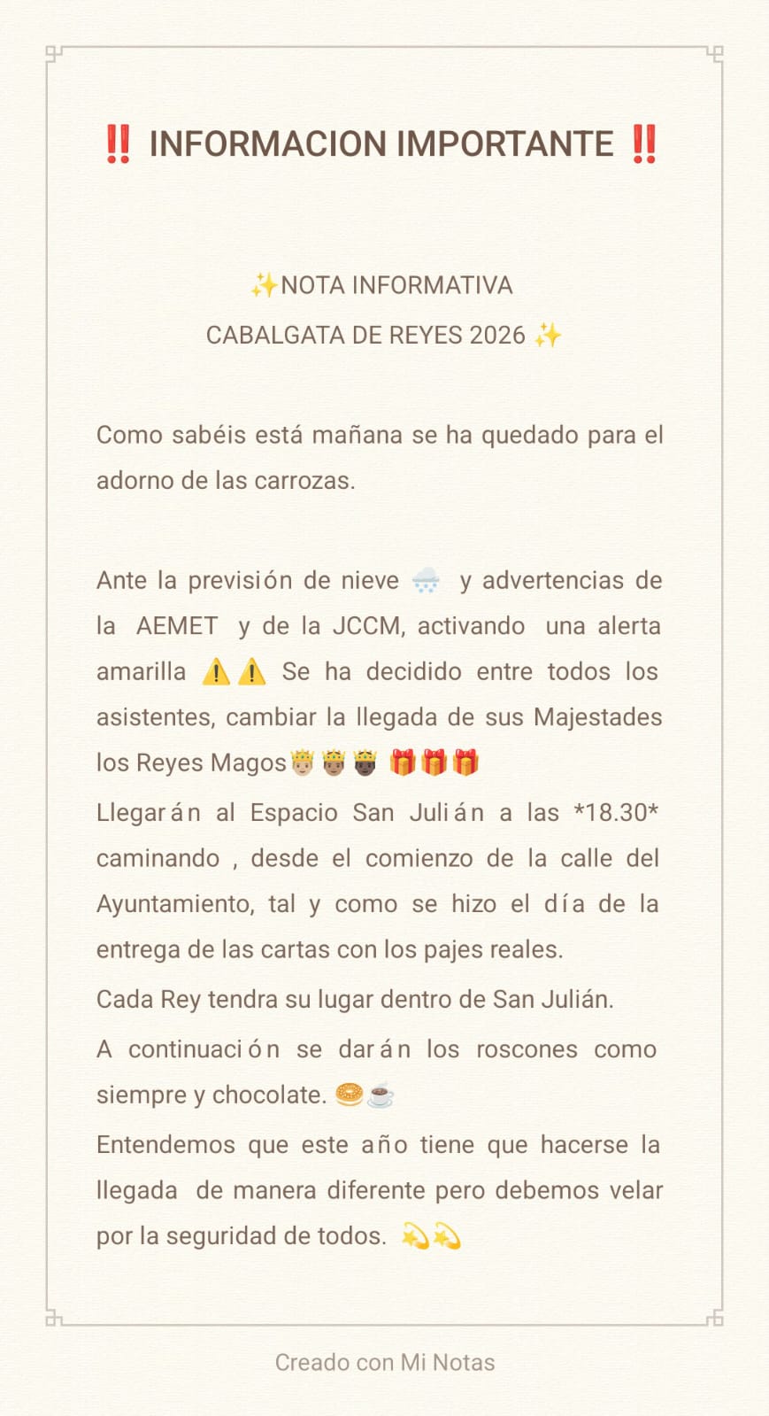 Estad atent@s porque habrá corte de tráfico durante la misma,de 16 horas a 18 horas y prohibicion de aparcamientos tanto en el Palacio como en la Puerta de la Virgen.