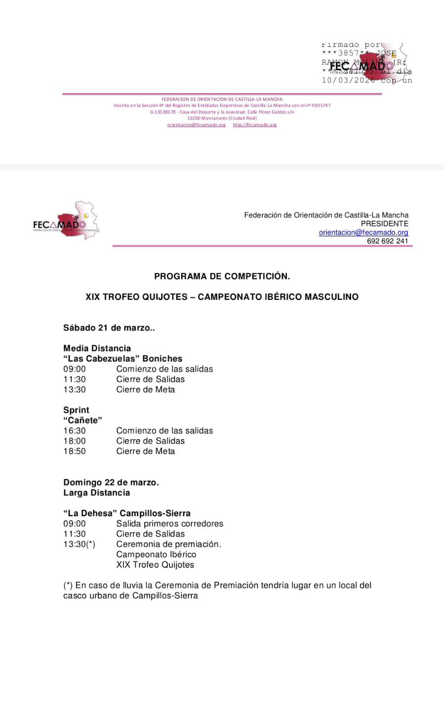 El próximo día 21 de marzo se celebrará una carrera de orientación perteneciente al campeonato de España.