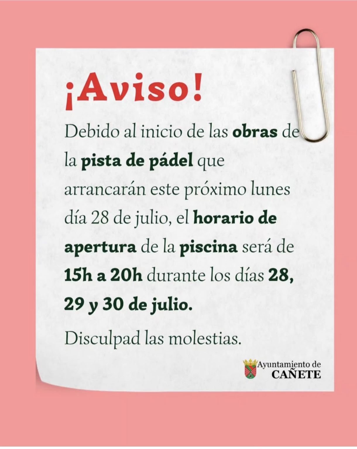 Esta semana en horario de mañana y la semana que viene también estaremos por las tardes.