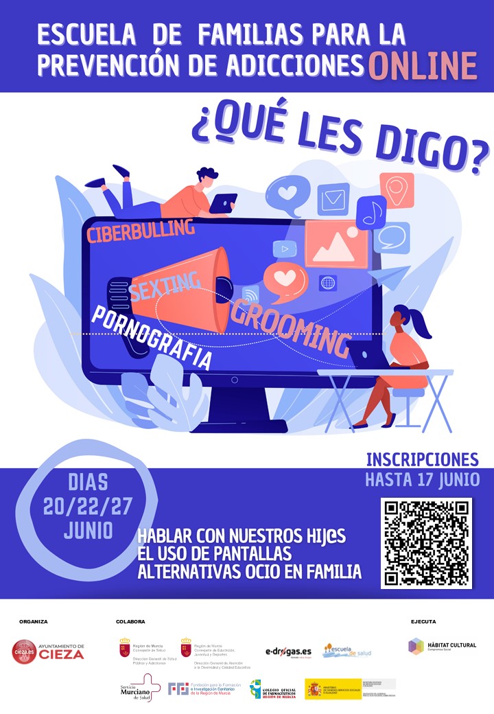 Os animamos a inscribiros a la "Escuela de familias para la prevención de adicciones", que será en formato online los días 20, 22 y 27 de junio.