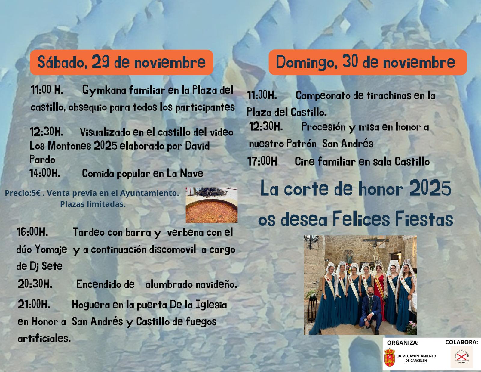 ℹ️ Se informa a la ciudadanía de la programación de las fiestas de San Andrés. Se recuerda que están a la venta los tickets para la comida del sábado 29 de noviembre.