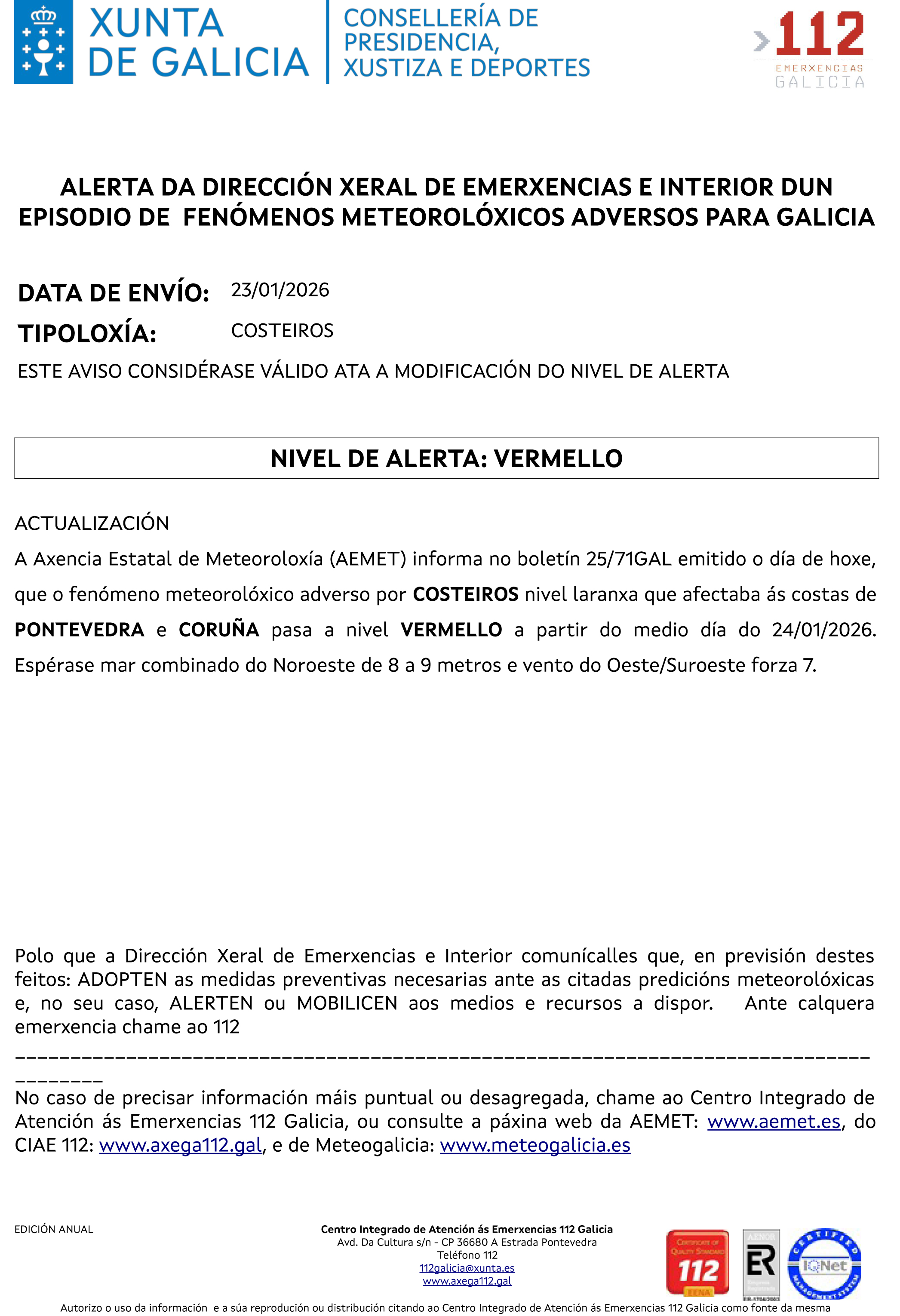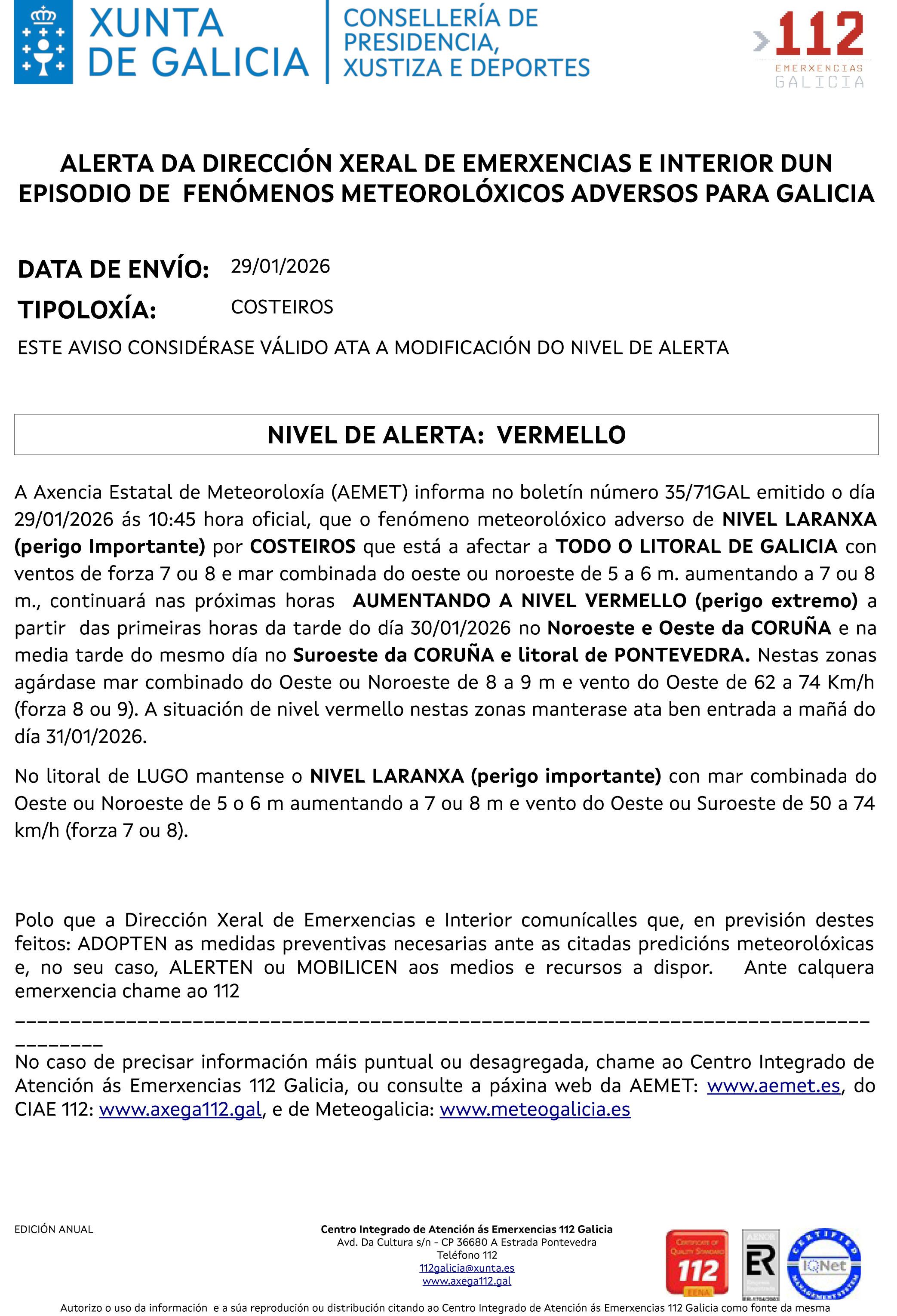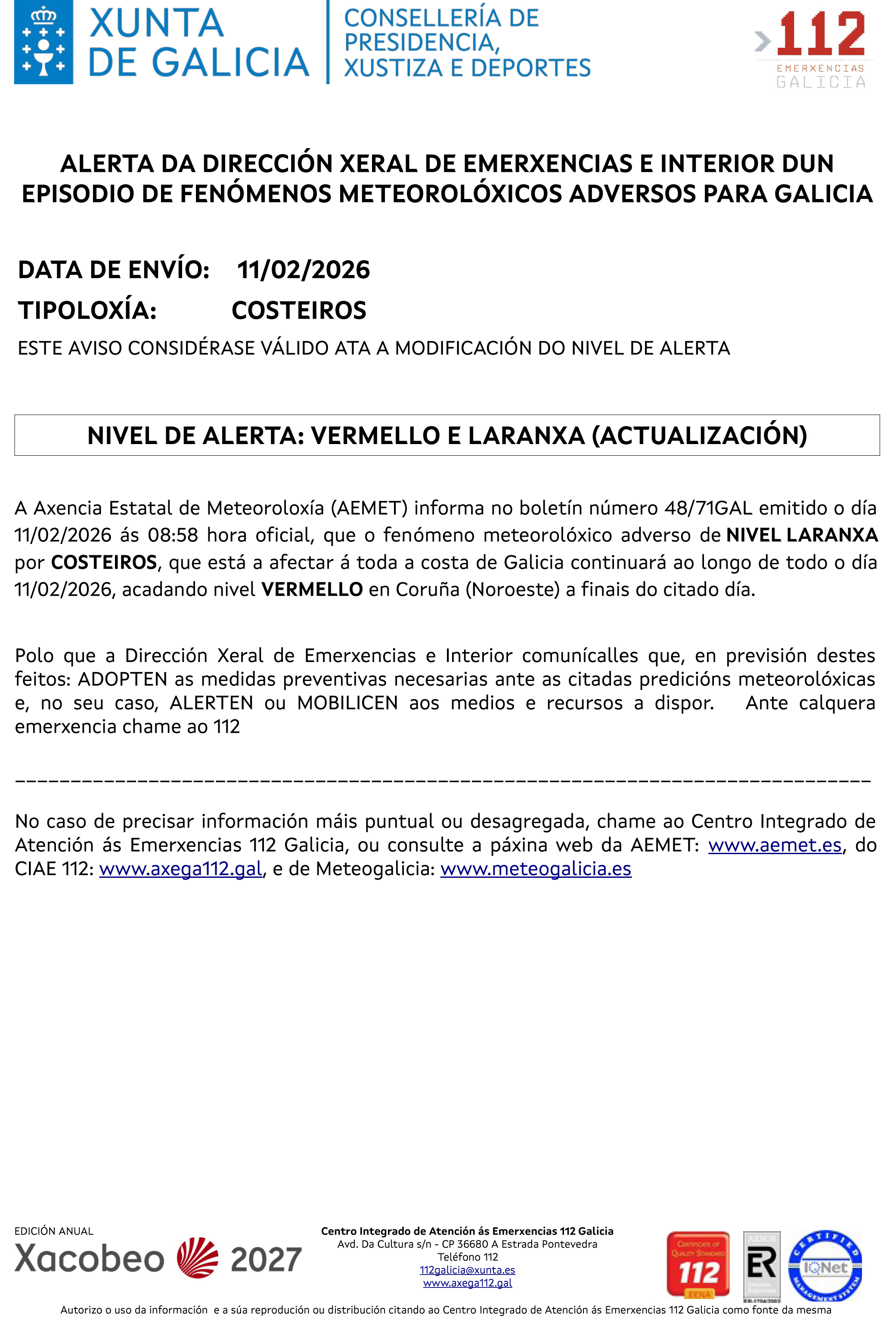 ALERTA FENÓMENOS METEREOLÓXICOS ADVERSOS COSTEIROS