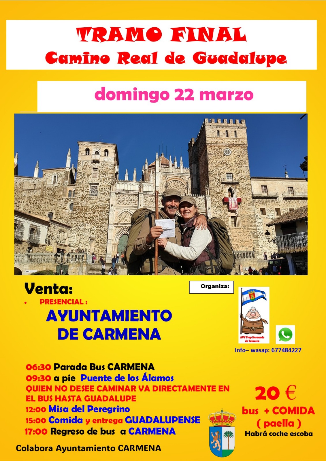 Las personas que vayan a hacer el camino de Guadalupe el próximo domingo día 22 de marzo, a las 07.00 h en la parada del autobús. Rogamos puntualidad.