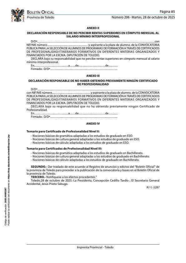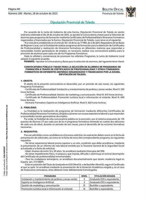 Os informamos de la convocatoria de la Diputación de Toledo Sobre PROGRAMA DE FORMACION REMUNERADOS para la obteNer un Certificado de Profesionalidad con beca dirigido a jóvenes de 16 a 29 años.