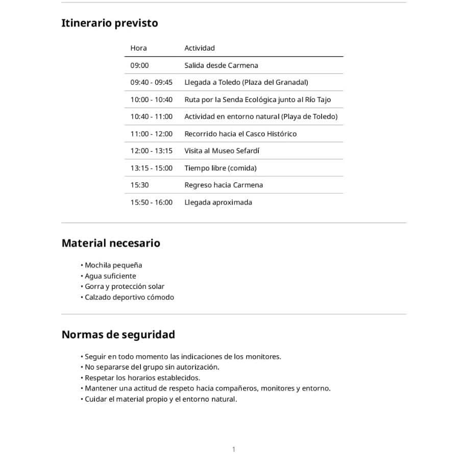 Salida : 09.00 h aprox y regreso sobre las 17.00 h.
