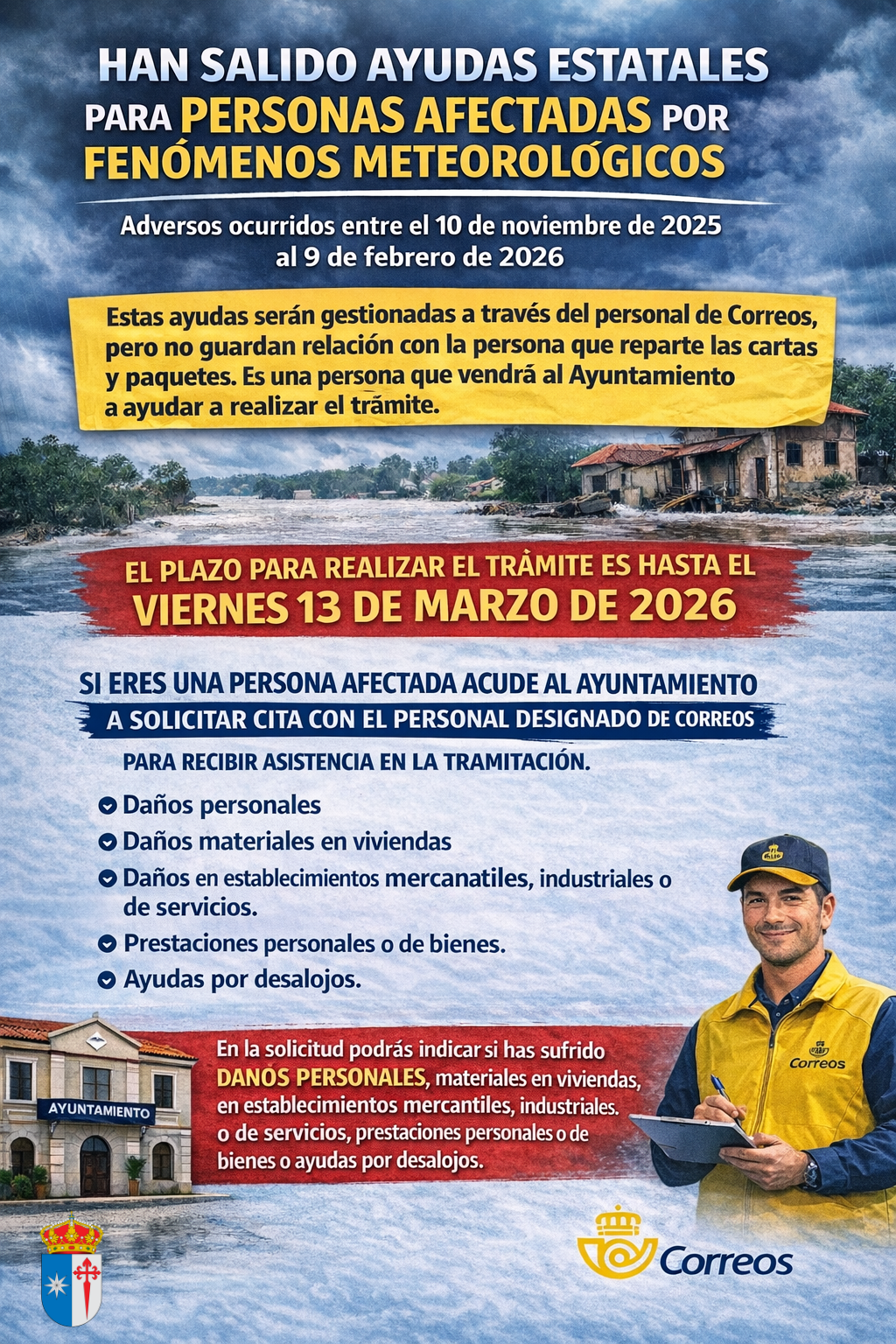 Han salido Ayudas Estatales para personas afectadas por fenómenos meteorológicos adversos ocurridos entre el 10 de noviembre de 2025 al 9 de febrero de 2026.