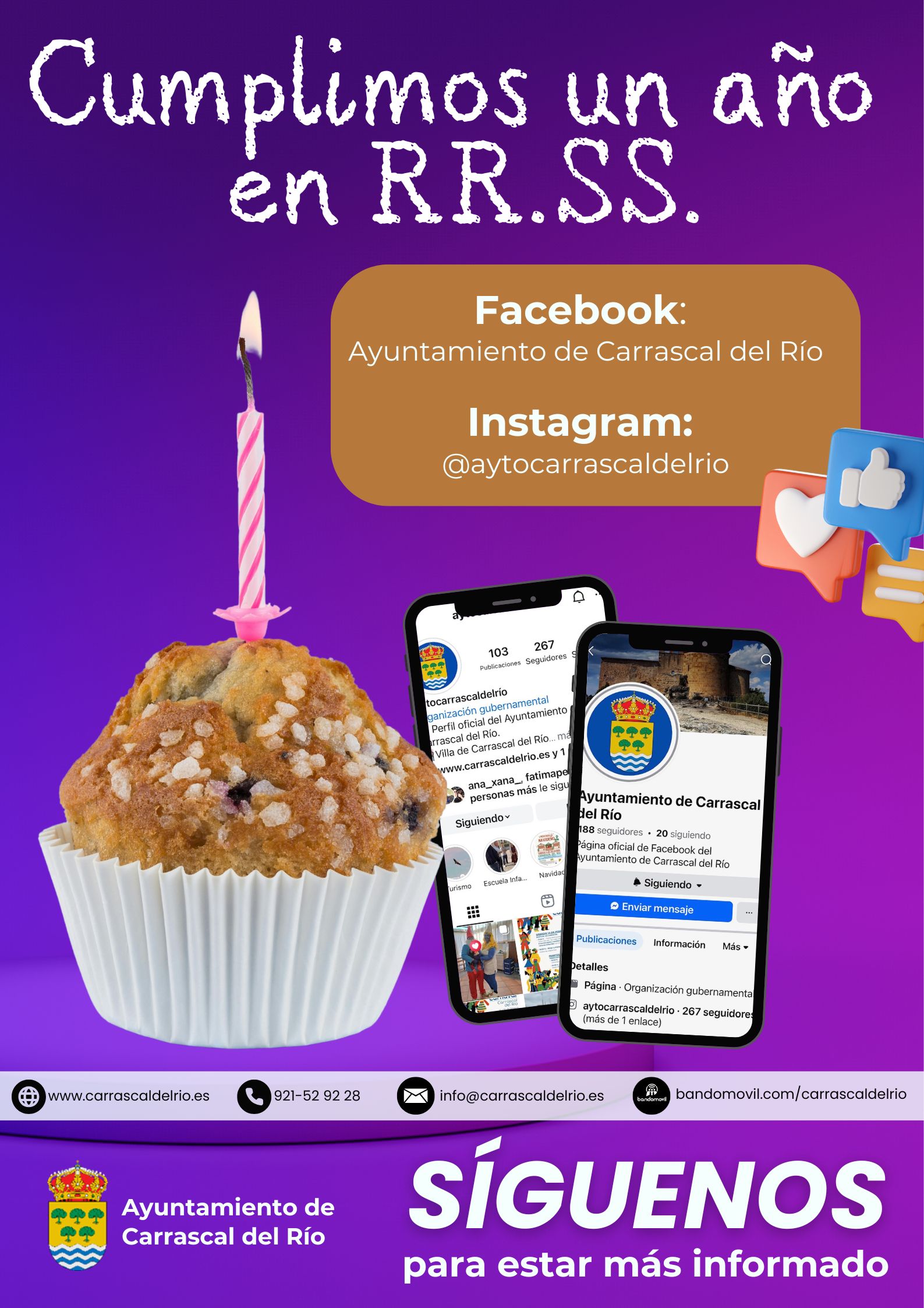 Hace un año que pusimos en marcha las Redes Sociales de Carrascal del Río para estar más cerca de vosotros y ofreceros otro punto más de información sobre lo que sucede en el municipio.
