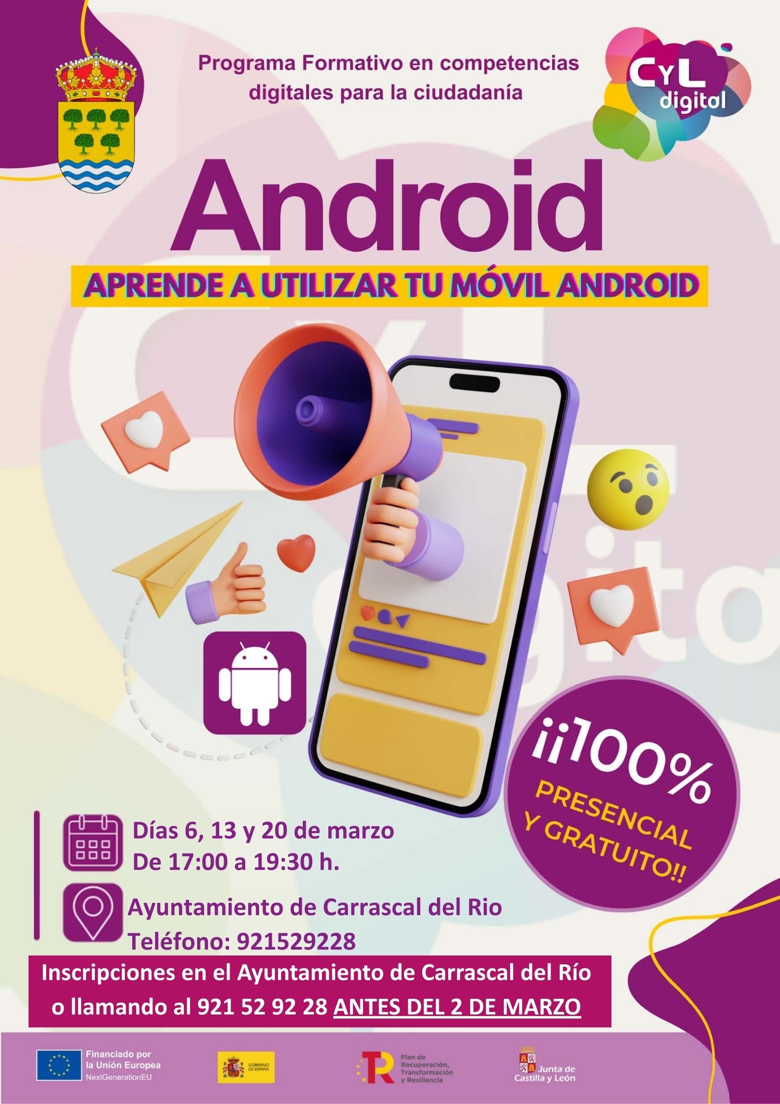 Para asistir, tienes que apuntarte en el Ayuntamiento o llamar al 921 52 92 28 antes del 2 de marzo.