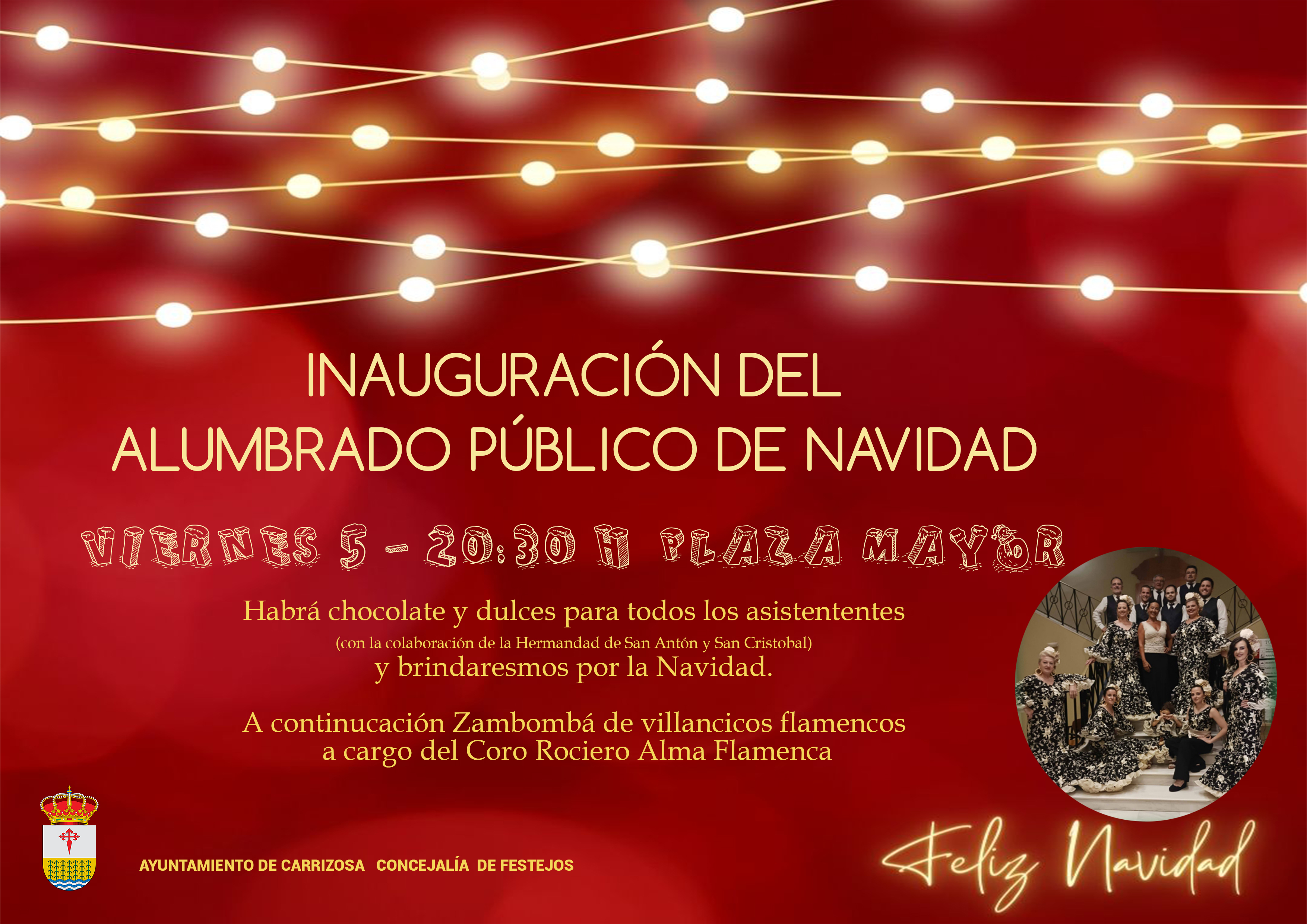 Habrá chocolate y dulces para todos los asistentes (colaboran la Hermandad de San Antón y San Cristóbal), y brindaremos por la Navidad.