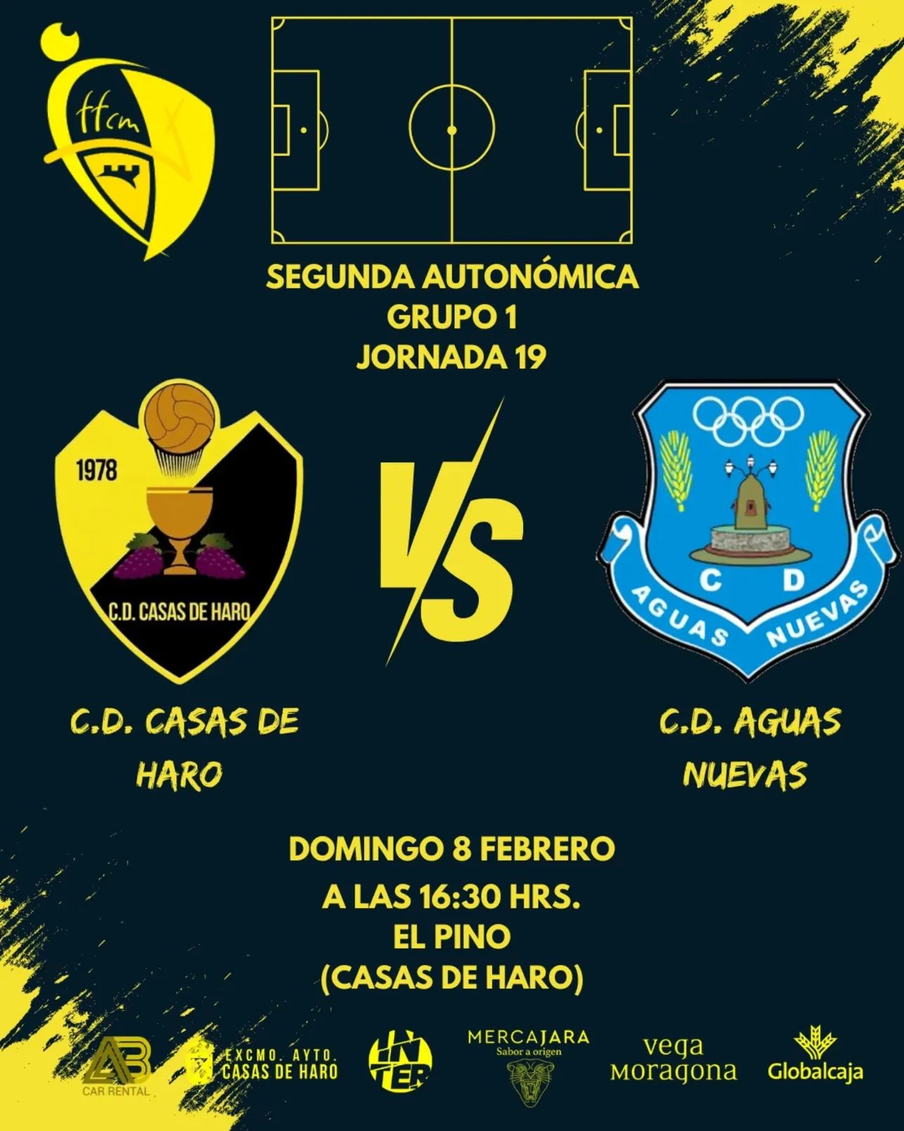 Este domingo vuelve la emoción de la liga a Casas de Haro. Iniciamos la segunda vuelta contra el C.D. Aguas Nuevas y queremos ver las gradas de El Pino llenas de amarillo y negro.