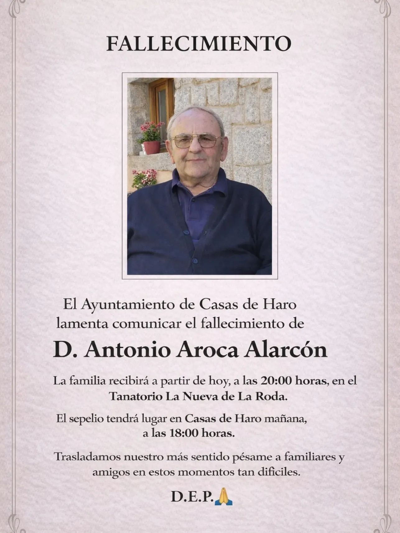🤍 Desde el Ayuntamiento de Casas de Haro trasladamos nuestro más sentido pésame a familiares y amigos. -
