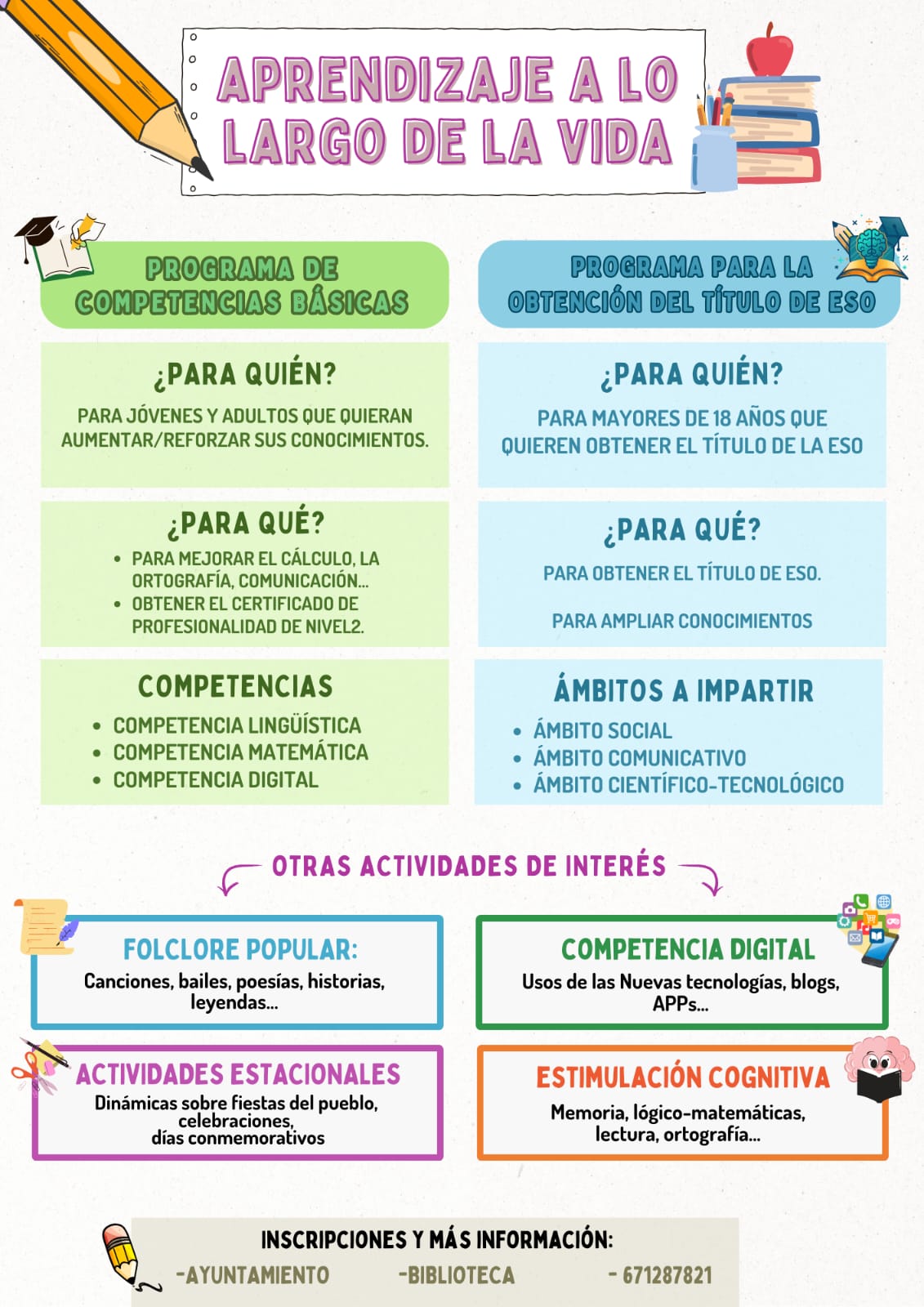 Se informa de que está abierto el plazo de inscripción para el Programa de Aprendizaje a lo largo de la Vida, para el curso 2025-26, donde se desarrollarán el Programa de competencias básicas y el programa para la obtención del graduado de ESO.