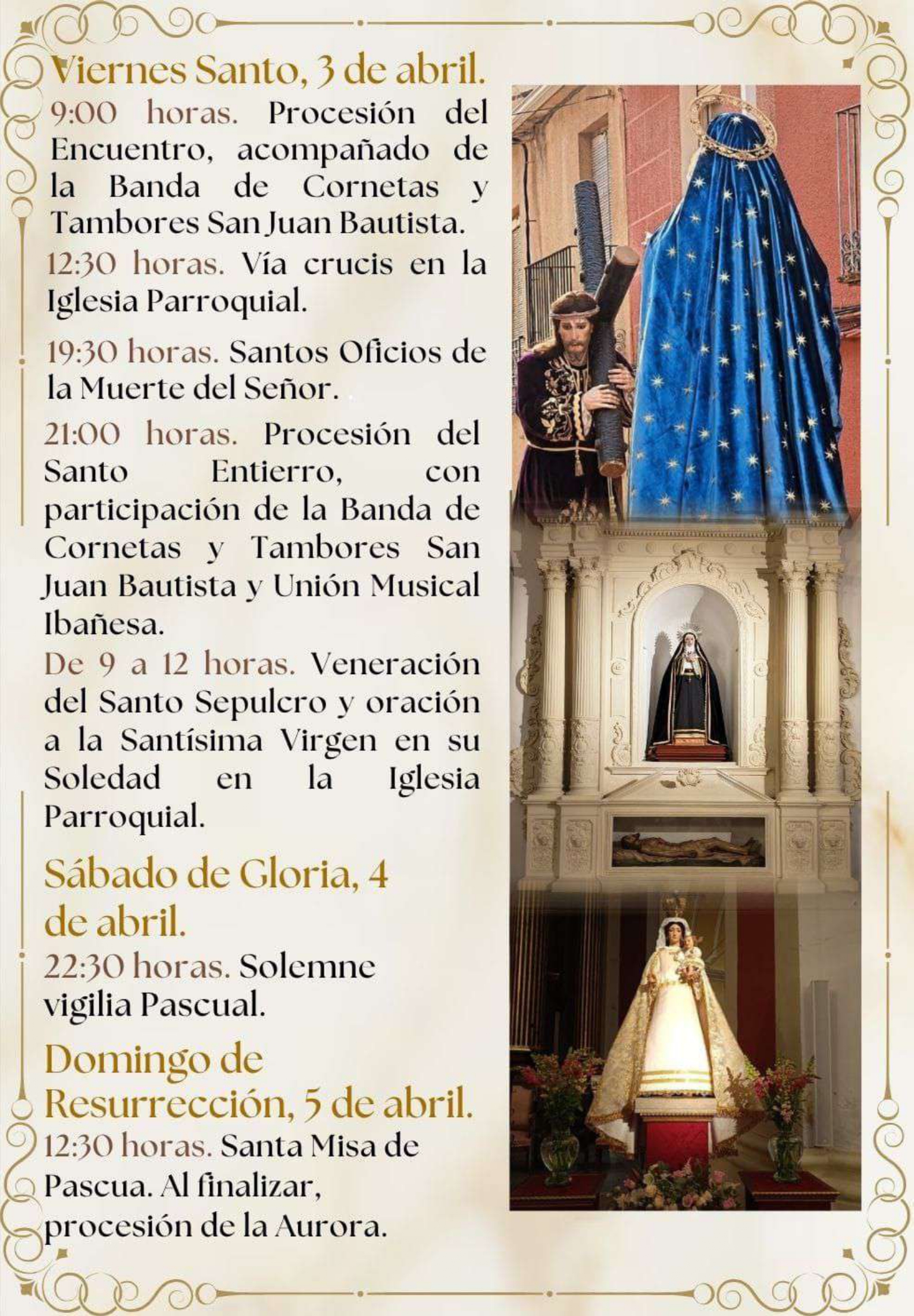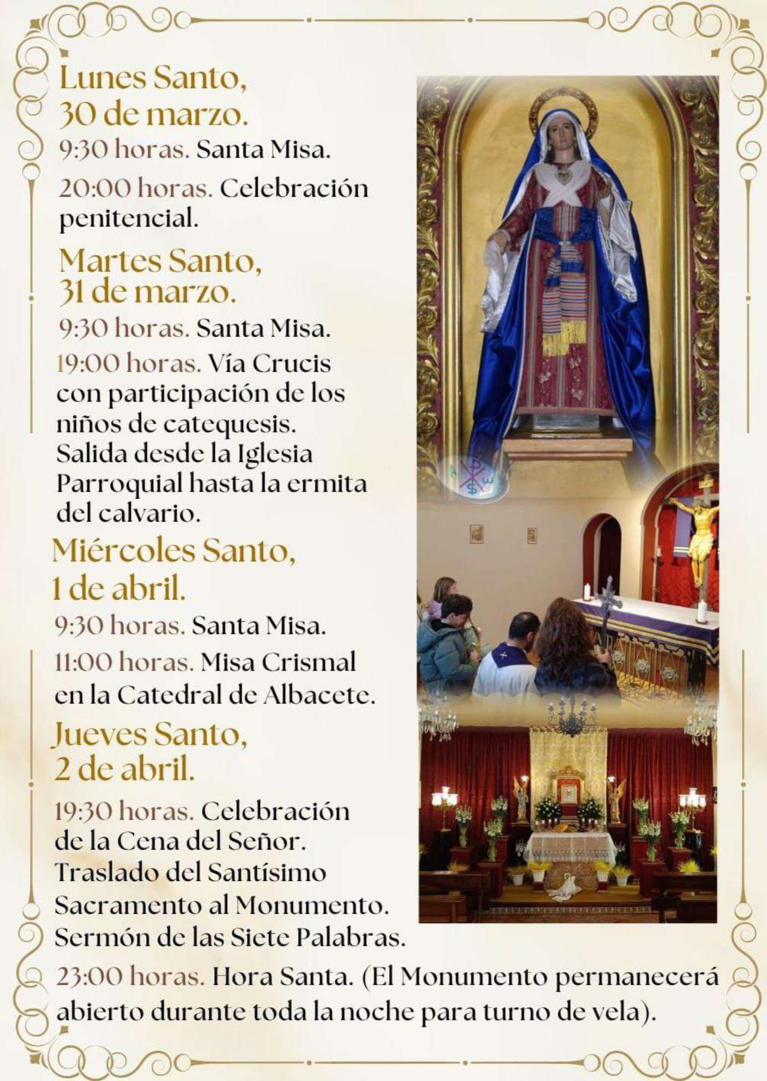 Información Parroquia. En el archivo adjunto dispones del programa completo de celebraciones de la Semana Santa 2026.