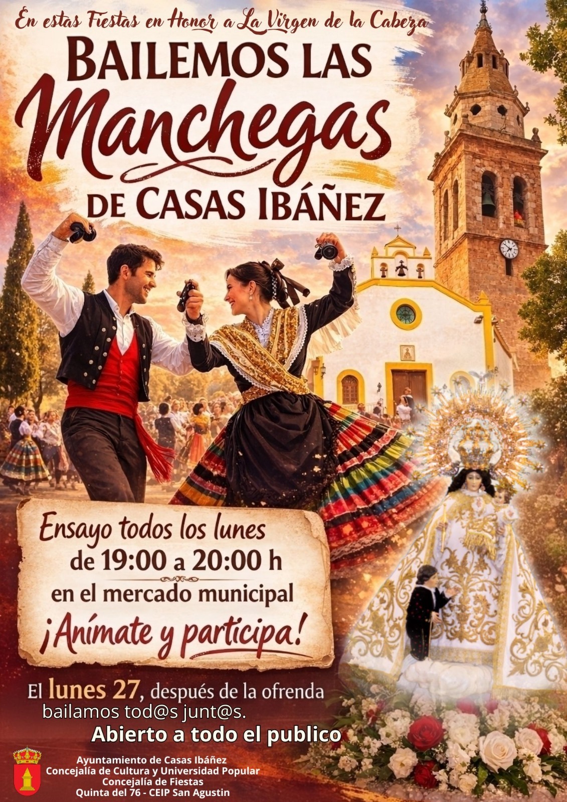 Con motivo de las Fiestas en honor a la Virgen de la Cabeza, te invitamos a disfrutar de nuestras tradiciones y aprender a bailar las Manchegas 🎶✨
