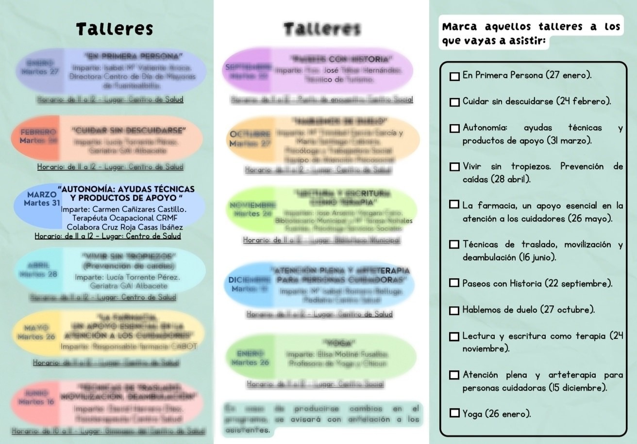 El taller previsto dentro de E𝗦𝗣𝗔𝗖𝗜𝗢 𝗖𝗨𝗜𝗗𝗔𝗗𝗢𝗥𝗘𝗦 – 𝗜𝗜 𝗧𝗮𝗹𝗹𝗲𝗿 💚 queda aplazado.