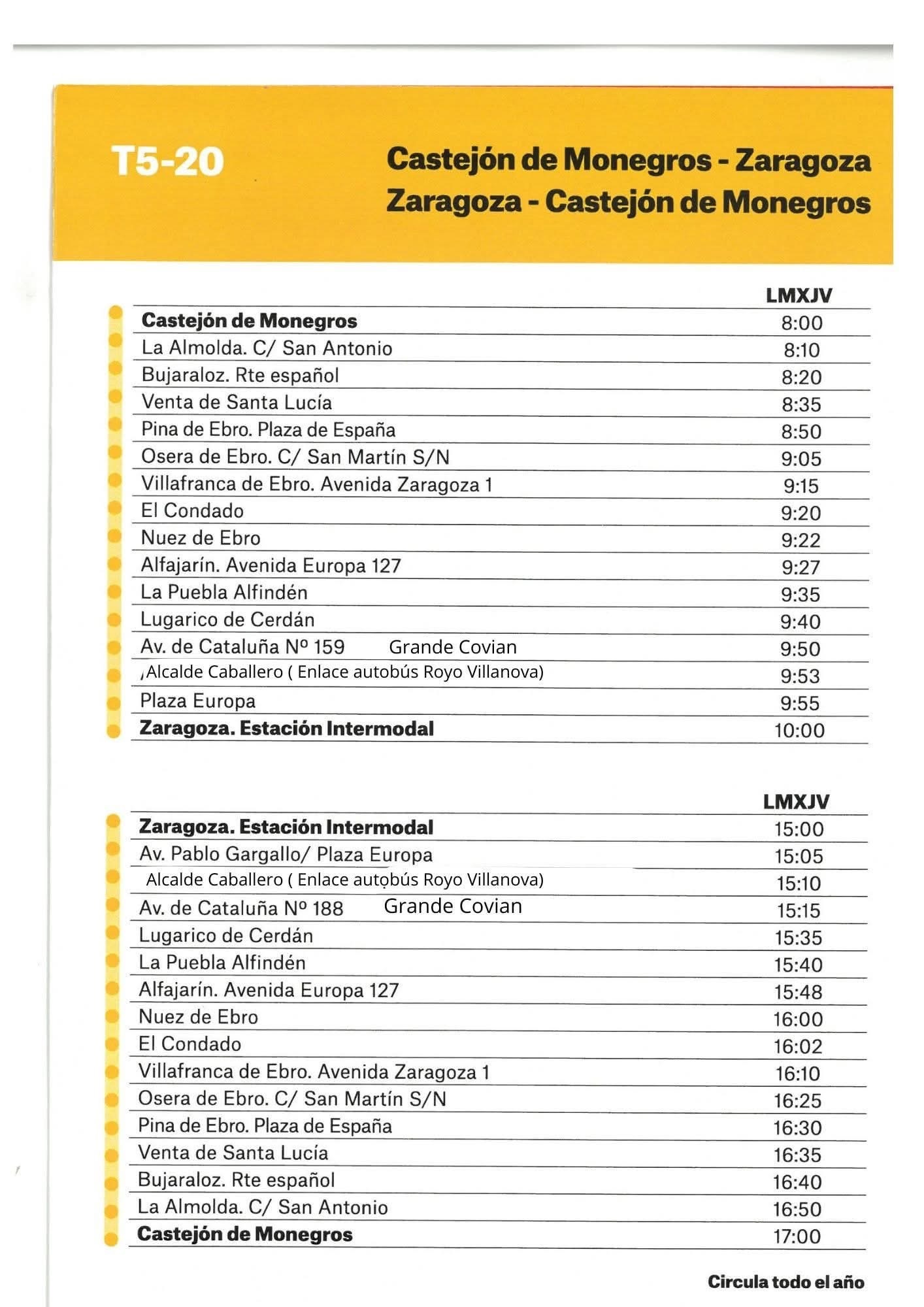 A partir del lunes 14 de octubre se restablece la línea de autobús Castejón de Monegros – Zaragoza.