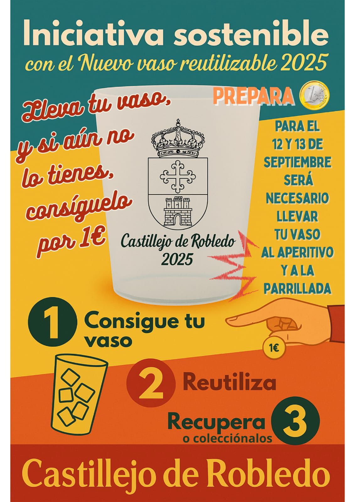 👉 Para el aperitivo y la parrillada, recuerda traer tu vaso reutilizable con el logo de Castillejo de Robledo 🏰.