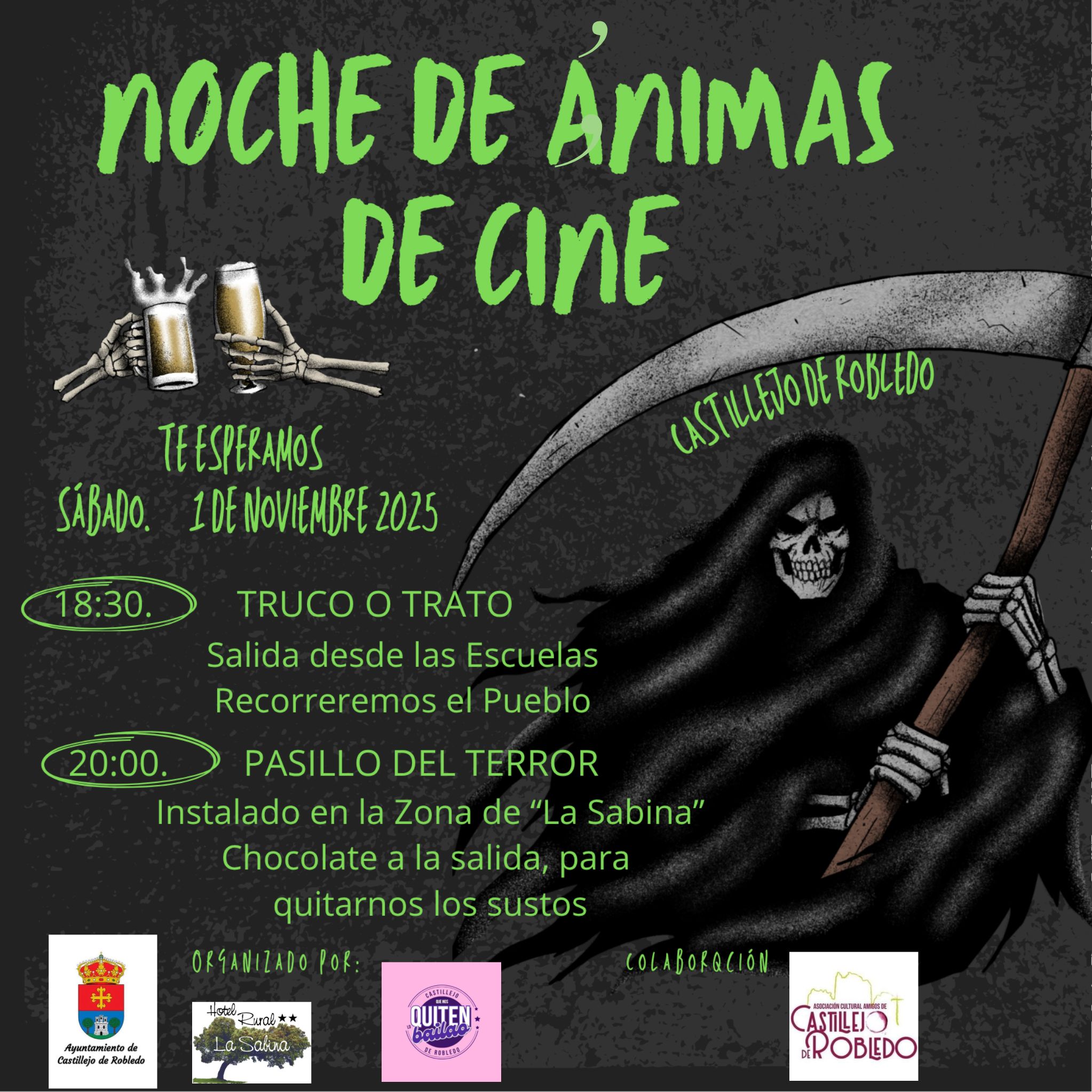 El próximo sábado, 1 de noviembre de 2025, se celebrará la 🎬 NOCHE DE ÁNIMAS DE CINE 🎬, con las siguientes actividades: