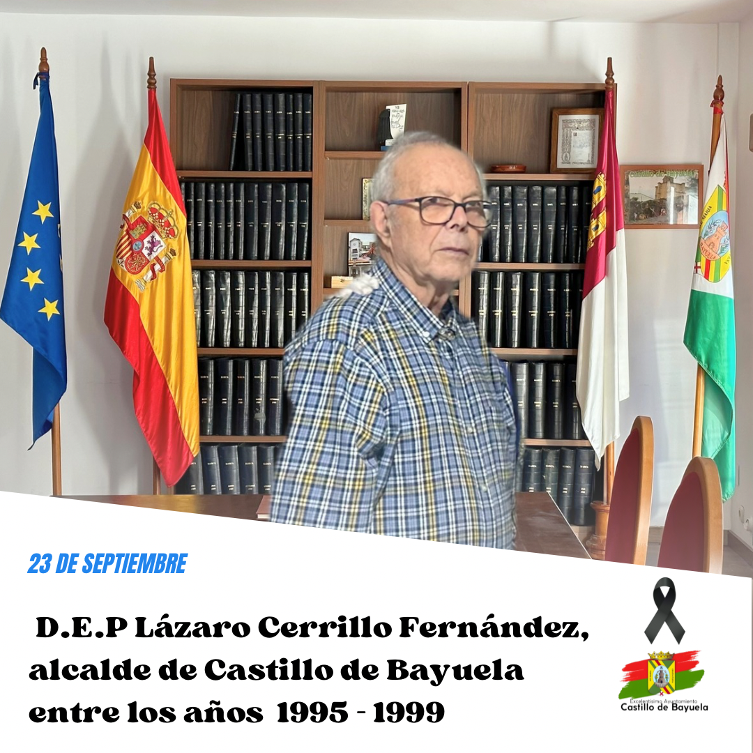 El Excelentísimo Ayuntamiento de Castillo de Bayuela lamenta profundamente el fallecimiento de Don Lázaro Cerrillo Fernández, alcalde de nuestro municipio entre los años 1995 y 1999.