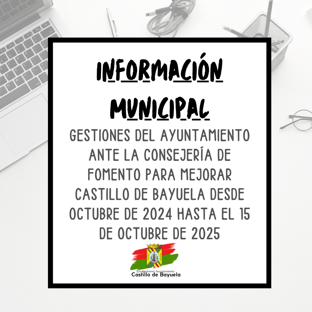 Con independencia de los tramites realizados con anterioridad, durante el último año, el Ayuntamiento de Castillo de Bayuela ha realizado diversas gestiones formales ante la Consejería de Fomento de Castilla-La Mancha, con el objetivo de mejorar la seguridad vial, el transporte y los servicios en nuestro municipio.