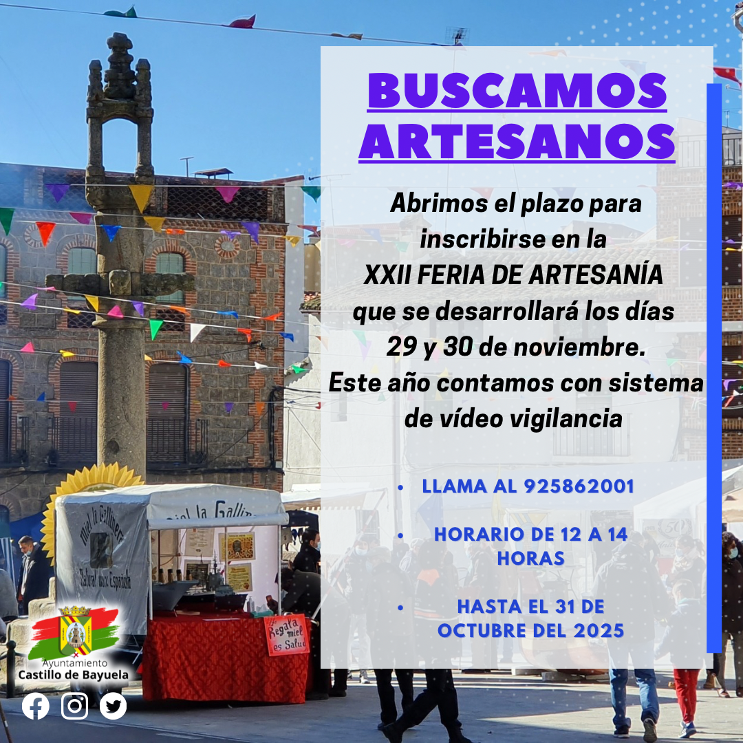 Ya está abierto el plazo de inscripción para participar en la XXII Feria de Artesanía de Castillo de Bayuela, que se celebrará los días 29 y 30 de noviembre.