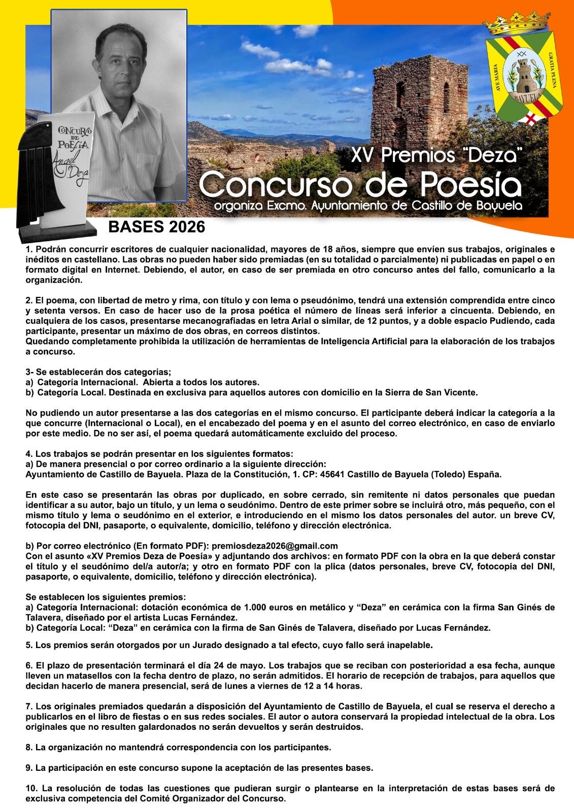 XV PREMIOS DEZA - CONCURSO DE POESÍA2026-03-03 10:11:55Info General✍️ XV Premios “Deza” – Concurso de Poesía 2026