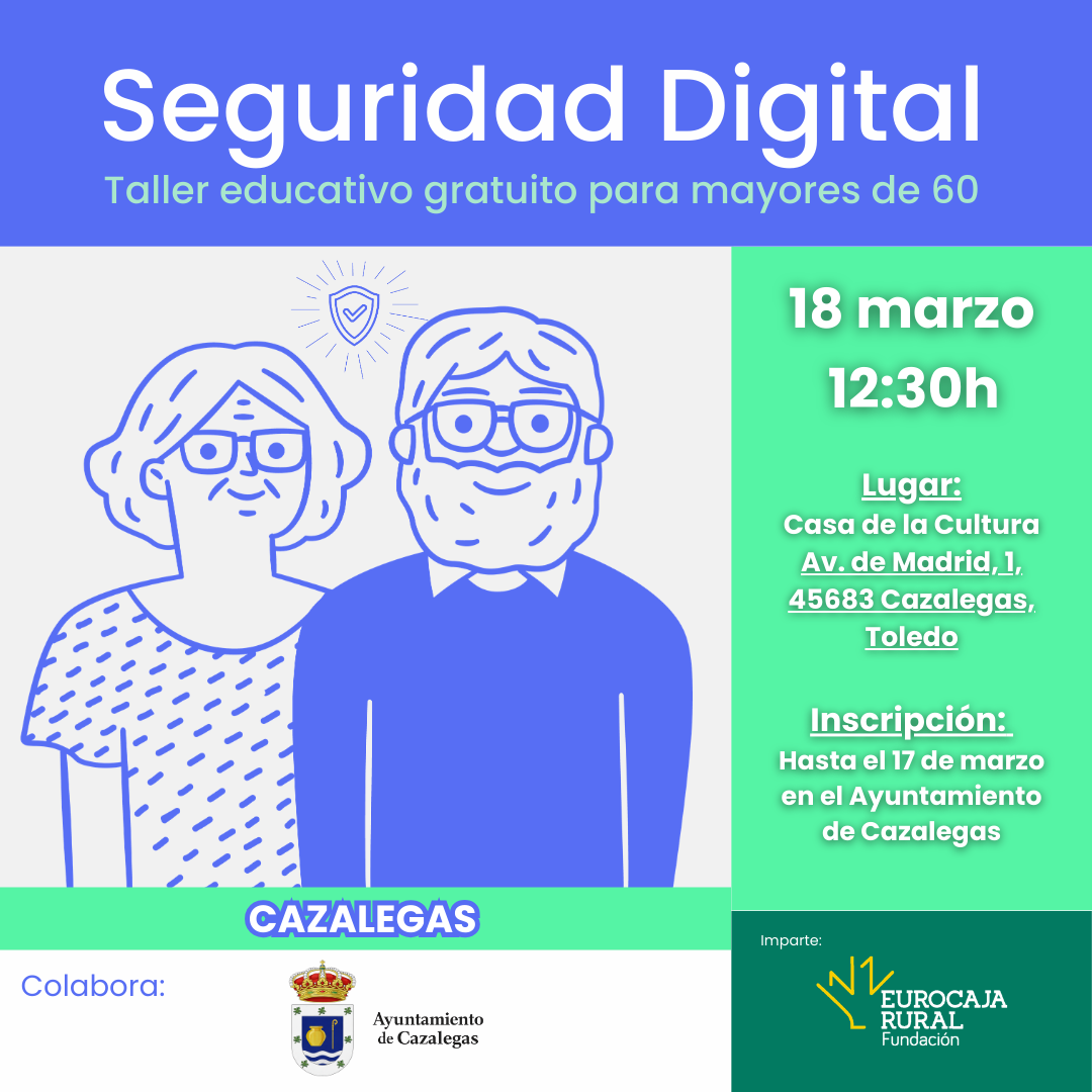 ℹ️ Les informamos de la celebración de un taller sobre seguridad digital dirigido a personas mayores de 60 años.