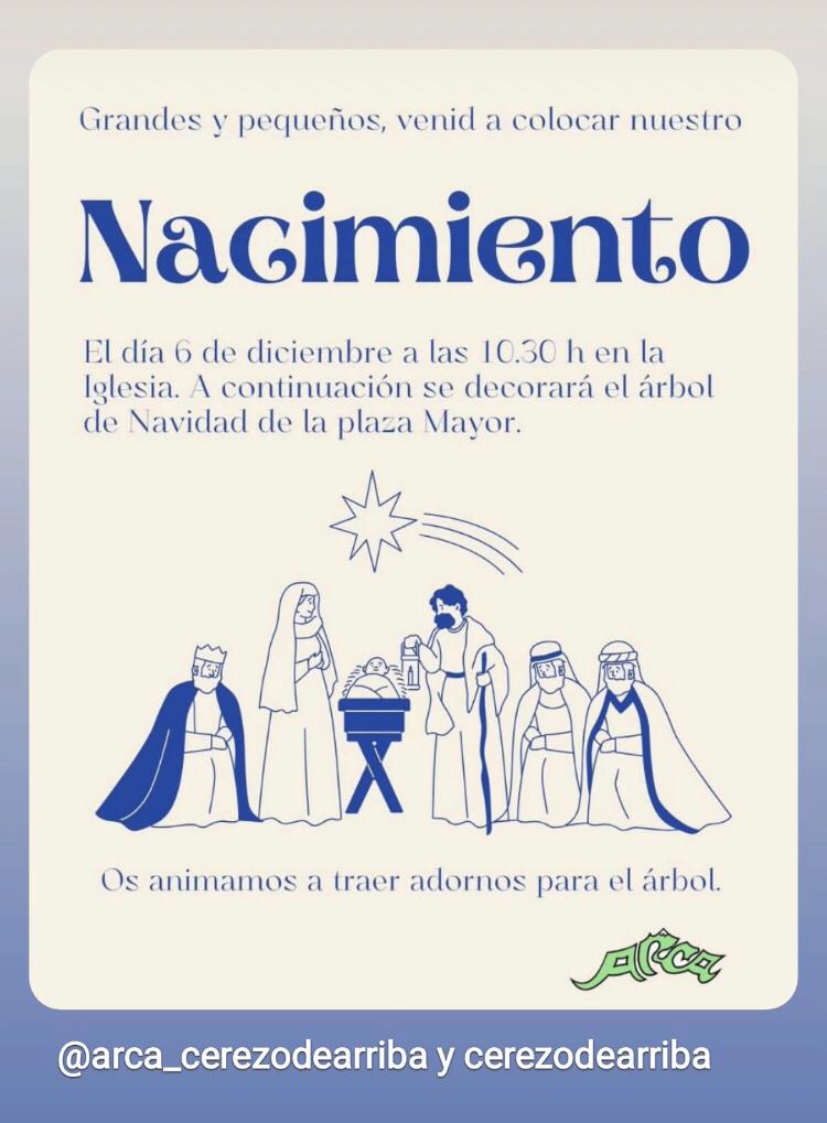 Se informa que el día 6 de diciembre a las 10:30h se va a proceder a la colocación del nacimiento en la iglesia y posterior decoración de nuestro árbol de navidad de la plaza mayor.