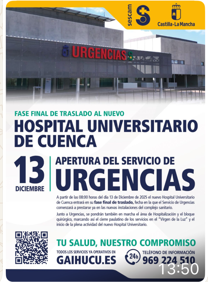 el día 13 de diciembre de 2025, todas las urgencias médicas se atenderán a partir de las 8 horas, en el nuevo hospital Universitario. -