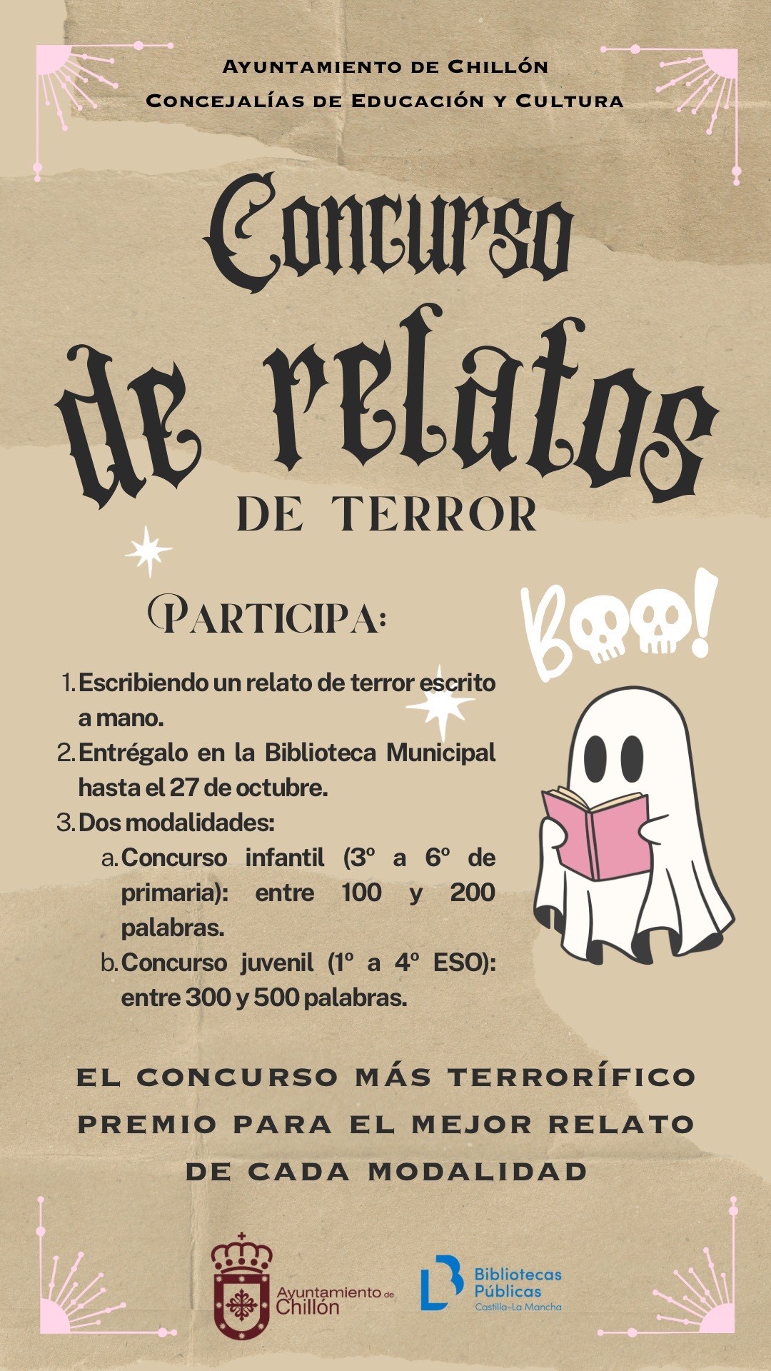 La Biblioteca Municipal te invita a participar en nuestro Concurso de Relatos de Terror, con motivo del mes más misterioso del año.